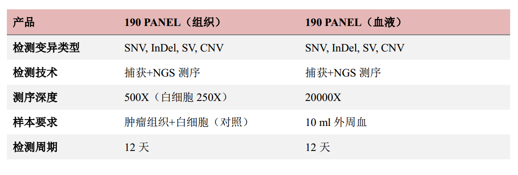 北京泛生子基因科技有限公司开发的肝癌190基因检测系统采用探针捕获技术,可提供血液和组织不同时期的分别检测或同一时期的配套检测。仅需1份样本,即可精准全面的提供肝癌靶向用药指导、化疗药物敏感性及毒副作用、免疫治疗指导、TMB肿瘤突变负荷评估;并提供预后判断、肿瘤复发、转移、耐药相关基因检测结果,帮助医生有效的实现结肝癌患者的全周期治疗指导和动态管理。具体检测参数如下图所示。