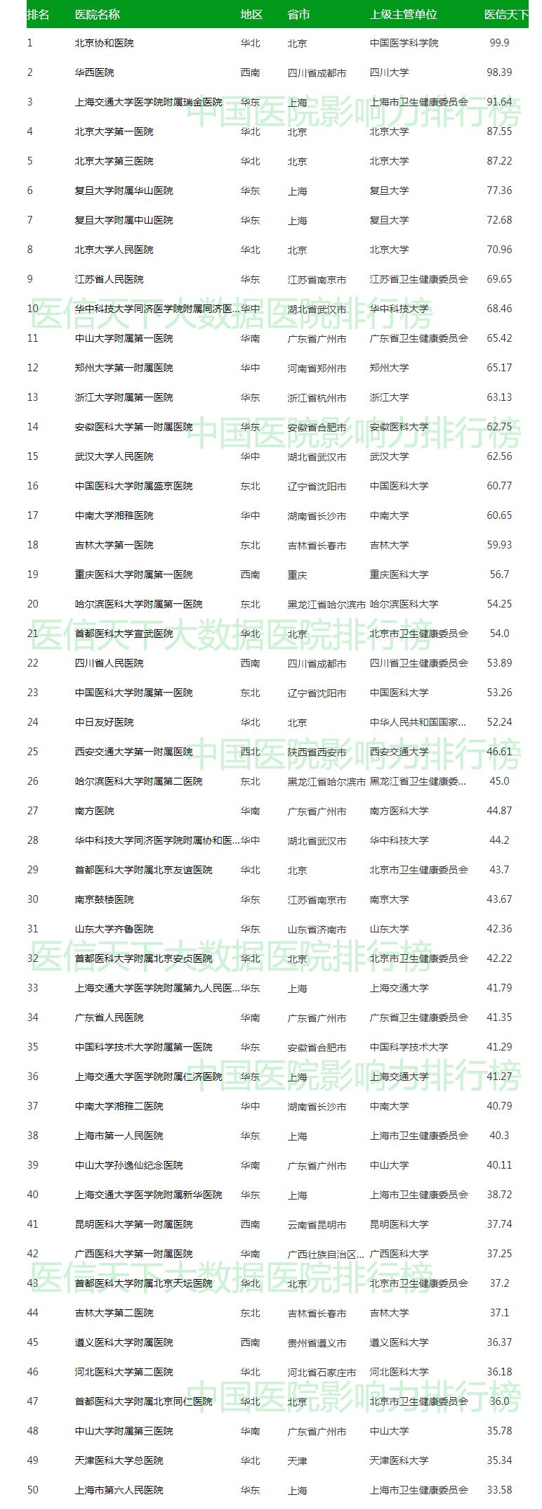 学科专业发展出现了内科强外科弱,外科内科化趋势,特别是心外科专业。表现出来大部分医院心外科做心内科导管治疗,医院学科绩效考核中会出现心外科导管和心外科开胸手术一起评价,这种绩效考核显然不公平,举例来说就是二级医院心外科绩效考核体系和安贞医院心外科开胸手术绩效考核指标一样,临床中DRGS绩效和更多绩效考核一样,出现这个结果显然是田忌**式比赛。 1. 新发现,医科院信息所排行榜由34个调整到29专业,医信天下初始一直是29个专业排行。 2. 医院评价方法已经有医院进行针对性研究,目的是提高专业学科排名。2019中国医院影响力排行榜是由中国医药新闻信息协会健康传播共享中心、医信天下互联网医学标准委员会共同发布。 |