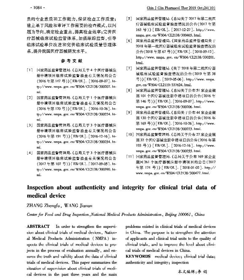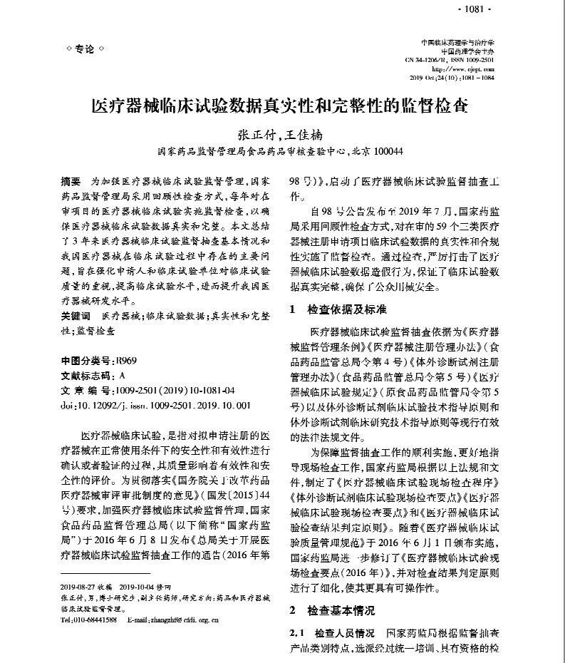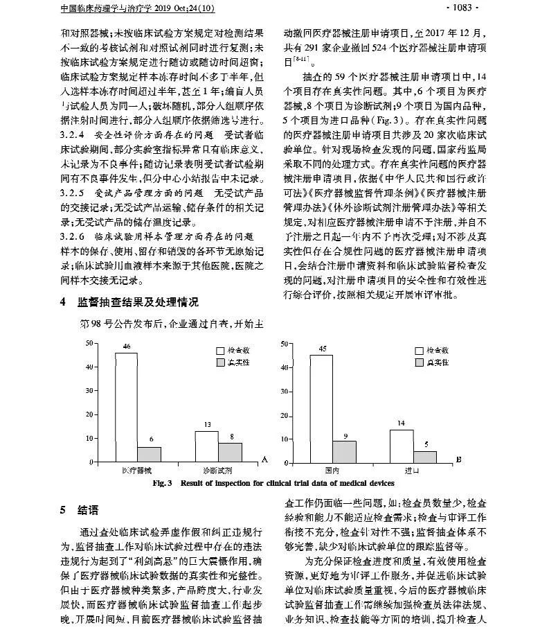 本文总结了3年来医疗器械临床试验监督抽查基本情况和我国医疗器械在临床试验过程中存在的主要问题,旨在强化申请人和临床试验单位对临床试验质量的重视,提高临床试验水平,进而提升我国医疗器械研发水平。