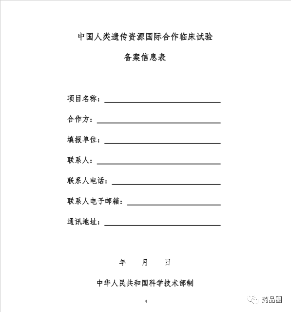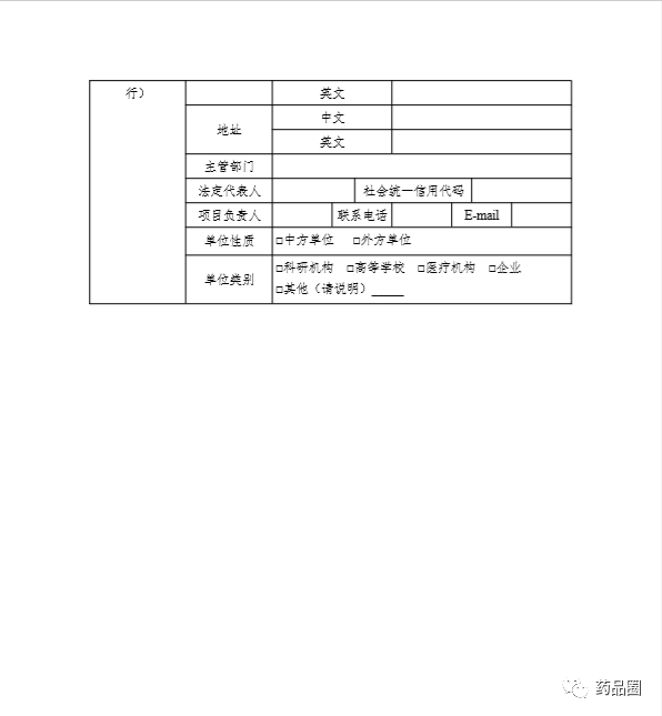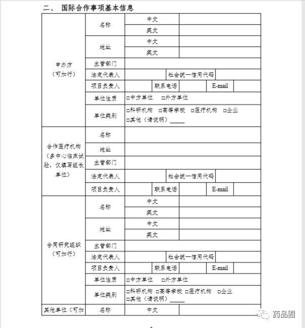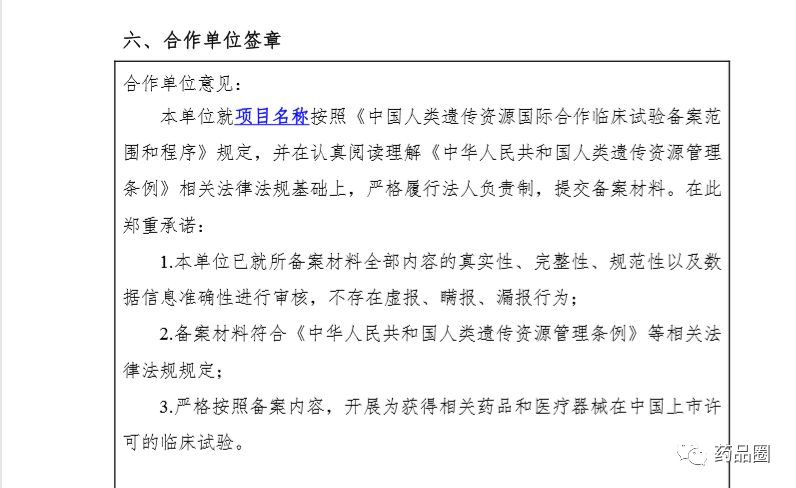 1.合作方是指参与合作的所有中方单位、外方单位,包括临床试验申办方、医疗机构(组长单位)、合同研究组织。 2.填报单位为申办方或医疗机构(组长单位),且为中国境内依法成立的法人单位。 3.合作方应认真阅读《中华人民共和国人类遗传资源管理条例》《中国人类遗传资源国际合作临床试验备案范围和程序》,所备案内容须符合要求。 4.备案信息表内容须实事求是、准确完整、层次清晰。合作方须对备案材料的真实性、完整性、准确性、规范性负责。 5.填报单位根据网上平台提示在线填写备案信息表。信息表正文 部分统一用仿宋小四号字填写,行间距1.5倍。凡不填写的内容,请 用“无”表示。外来语要同时用原文和中文表达,外文缩写首次出现时,须注明全称。