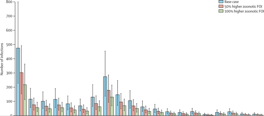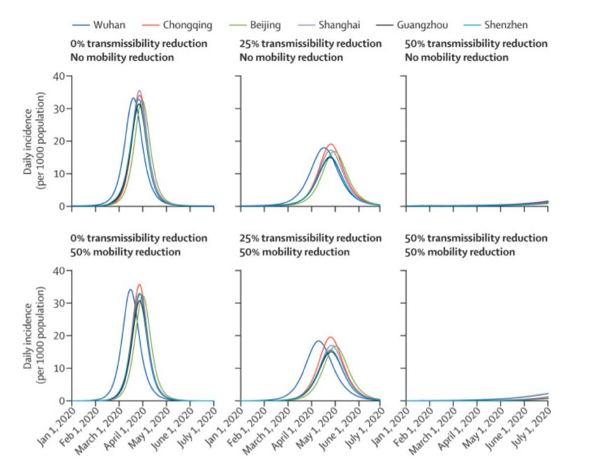 作者:Walter 导读:2020年2月2日,湖北省新型冠状肺炎确诊人数破万,北上广等主要城市感染人数直逼200,冠状病毒依托春节返程冲击温州和深圳等经济贸易中心,感染人数直冲300而去。海外累计确诊150例,其中日本20例,泰国19例,新加坡18例,美国11例等。继武汉封城打响疫情攻坚战第一枪的11天以来,病毒江山遍踏,举国忧思。如此坚定抗击肺炎,疫情还会延续多久? 顶级医学期刊《柳叶刀》1月31日发表了香港大学Joseph T Wu教授团队的新型冠状病毒肺炎2019-nCoV预测模型,基于2019年12月31日至2020年1月28日武汉输出病例数据,并结合社会和个人的干预措施,推测源发地累计感染人数以及疫情范围和持续时间等,为中国乃至全球后续公共卫生防御策略提供参考。 研究中确诊病例数据来自各中国疾病预防控制中心,使用官方航空指南中月度航班数据和腾讯数据库中国大陆300多个地级市的人员流动信息,基于SARS的流行病学研究估计序列间隔,使用易感-暴露-感染-恢复多集群模型估计各个城市多爆发情况,使用马尔科夫链蒙特卡洛方法(MCMC)估计2019-nCoV的基本繁殖数数R0。该模型已将仅采取非药物措施的公共卫生干预纳入考虑,例如1月23日武汉封城等因素。 研究者估算2019-nCoV基本繁殖数R0为2.68(95%置信区间为2.47-2.86),意味着1名感染者可能传播2名以上新感染者,感染人数翻倍时间约为6.4天。截止1月25日,已有约75815(95%置信区间为37304-130330)名武汉居民感染新型肺炎,而重庆、北京、上海、广州和深圳已经分别输入了约461、113、98、111、80名武汉肺炎患者。由于这些城市人口众多,多为交通枢纽,其间的次级爆发为2019-nCoV在中国全境以及海外的大规模传播奠定基础。 预测从武汉输出至各大城市的新型肺炎病例数 研究者假设,若2019-nCoV仍局限在武汉时,显示出较实际高50%甚至100%对人畜共患病力,那么其基本繁殖数R0将分别下降为2.53和2.42,而武汉的感染基数将分别下降38%和56%。相应地,输出到各大城市的病例规模将大幅度缩小。 大武汉地区预测病毒基本繁殖数和爆发规模的后验分布 通过计算,研究者发现病毒传播力至少降低63%(1-1/R0)才能将传播完全阻断,而武汉封城后病毒在城市间流动概率若仅减小50%,阻断传播的效果微乎其微,但病毒自身的感染能力是决定新型肺炎规模的关键。 若病毒本身的感染力不变,此时武汉市肺炎感染人数将在今年4月达到峰值,其他城市将延后1-2周;若病毒感染能力减弱25%,则新型肺炎的增长率和幅度将会大大降低,达峰时间在此前基础上再延后一个月,总体规模缩小50%;若病毒感染力减弱50%,则病毒基本繁殖数R0将降为1.3,此时,2020上半年都不会迎来感染人数峰值,但总感染人数将大大减少。 在不同病毒城市间流动率和病毒感染力时各大城市流行规模的预测 由于各大城市已经输入了数十例以上武汉肺炎患者,目前似乎已经开始了指数型增长,通过寻找并隔离源头以控制疫情的可能性较小。而这些大城市承载了50%以上的出境客流,因此海外各国预计将在2020上半年陷入与2019-nCoV的缠斗。 实际上,2019 n-CoV的基本特征虽与其他两种新型冠状病毒类似,但2002年的SARS-CoV波及37个国家的8000多人,造成800人死亡;MERS-CoV波及27个国家2494人,造成858人死亡。2019-nCoV在中国已感染17238人,造成361人死亡。 如钟南山先生所总结的,新型肺炎确诊患者病死率约为2.3%-2.4%,尽管2019-nCoV病毒感染能力强、影响范围广,但较H7N9、MERS、H5N1等相对温和,致死率低。2月2日湖北版“小汤山”——火神山医院正式交付,10天10夜高楼平地起,用中国速度坚定抗疫态度,随着第一批经验丰富的医护人员进驻,中国疫情防控的信念更加无可动摇! 这个模型根据武汉输出的新型肺炎病例数目,预测了2019-nCoV在武汉的感染基数,以及在公共卫生措施干预下和病毒自身变异后,新型肺炎在各大城市的发展规模和持续时间,提示未来的疫情防控着重严格把握公共卫生干预策略。并且重要的是,《Nature》1月31日报道全球各实验室正戮力同心,争相提取并研究2019-nCoV活样本,随着有效药物和疫苗研发捷报频传,中国与世界定能共渡难关! 参考文献: Joseph T Wu, et al. Nowcasting and forecasting the potential domestic and international spread of the 2019-nCoV outbreak originating in Wuhan, China: a modelling study. The Lancet. 31 Jan, 2020. Ewen Callaway. China coronavirus: labs worldwide scramble to analyse live samples. Nature. 31 Jan, 2020. https://news.qq.com/zt2020/page/feiyan.htm?from=singlemessage&isappinstalled=0 |