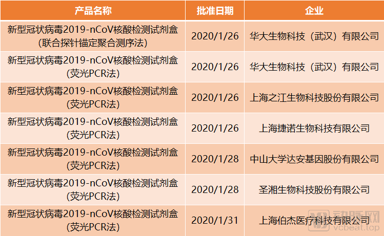根据应急审批程序,1月26日、28日、31日,国家药监局分别审批4个产品、2个产品、1个产品。 国家药监局应急审批的试剂产品 来源:国家药监局器械审评中心,动脉网制图