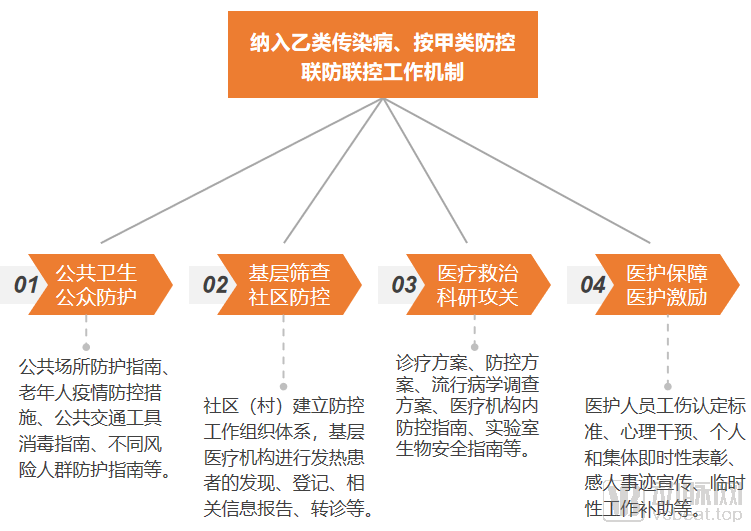 1月20日,国家卫健委发布2020年1号公告,将新型冠状病毒感染的肺炎纳入乙类传染病,并采取甲类传染病的预防、控制措施。此前,法定的乙类传染病有传染性非典型肺炎、艾滋病、病毒性肝炎等26种,甲类传染病有鼠疫和霍乱两种。