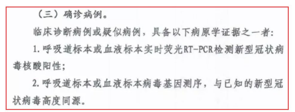 截至2月11日14时,全国确诊42718例,疑似21675例。此次疫情,中国所有省份无一置身事外。全国人民众志成城,共同参与到了防控疫情的战斗中。  国家在疫情扩散之前就派出了专家组前往武汉,虽说在春节假期之前对武汉颁布了封城令,还是没有完全阻止疫情的蔓延。但是国家对病毒的鉴定速度,以及针对疫情的措施得到了大部分国家的专家和组织的支持和认可。国家卫健委、疾病预防控制局也针对新型冠状病毒发布了防护指南和诊疗方案。其中,新型冠状病毒的诊疗方案已经出到了第五版。根据方案中“确诊病例”中明确规定:临床诊断病例或疑似病例,具备以下病原学证据之一者:1.呼吸道标本或血液标本实时荧光RTPC检测新型冠状病毒核酸阳性。2.呼吸道标本或血液标本病毒基因测序,与已知的新型冠状病毒高度同源。
