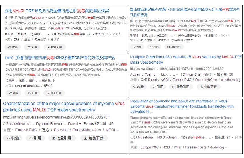 所以,通篇来看,虽说有一些问题,但是实时荧光RT-PCR方法还是能很好的满足当前的检测需求的。那么,接下来我们聊聊质谱:首先,编者好奇的是目前质谱针对病毒检测都做过哪些项目?于是,编者上网查了一下,发现国内的应用不是特别多,国外的相对多一些。