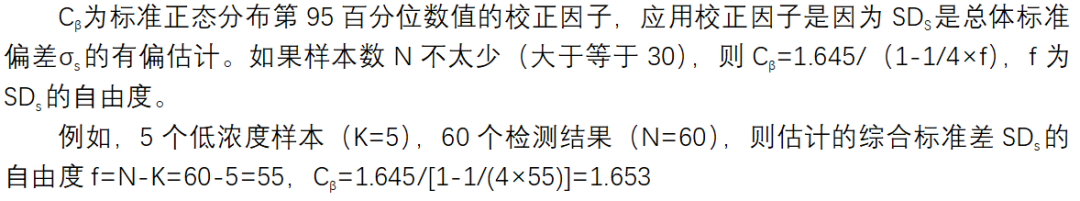 2.1 检出限LOD的确定:在确定LOD时,样品检测的标准差最好来自多个低浓度样品的检测,样品的浓度范围在1LOB至4LOB之间,建议至少不低于60个重复测定结果,最好取4~6个低浓度样品,计算这些水平下精密度的综合估计值,如果多个低浓度样品Cochran检验一致。