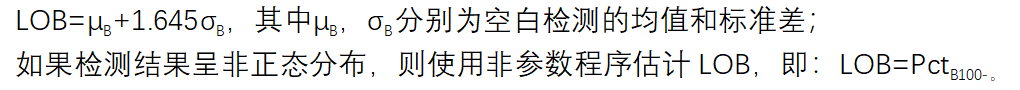 空白限LOB:在规定的条件下,空白样品被观察到的最大检测结果。