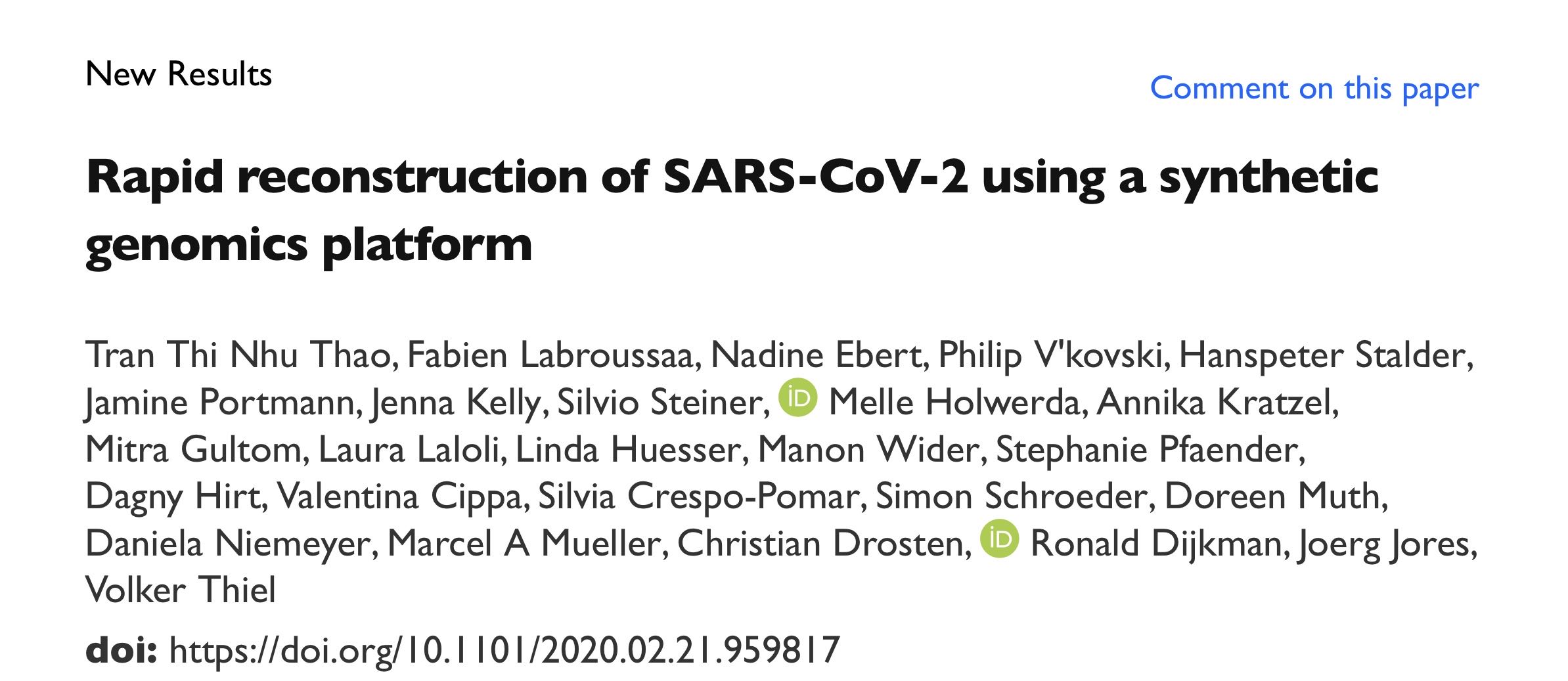 导读:新冠病毒现有确诊数连日来稳中有降,疫情猖狂的势头得到了有效遏制。但是,要彻底地阻断新冠病毒的进一步扩散,疫苗和药物将是最可靠的防护盾。为加紧新冠病毒相关研究,活病毒的获取十分关键。 近日,瑞士伯尔尼大学的Jorerg Jores和Volker Thiel团队在生物预印本网站BioRxiv上,提出了基于反向遗传学的病毒构造策略:无需从病人样本中提取完整病毒,在病毒核酸序列发表一周内,使用酵母大量生产出有活性的新冠病毒,或依据需求改造出实验所需的病毒工具。这提示了新冠病毒合成改造的快速途径,大大减少了病毒变异为研究带来的困难。
