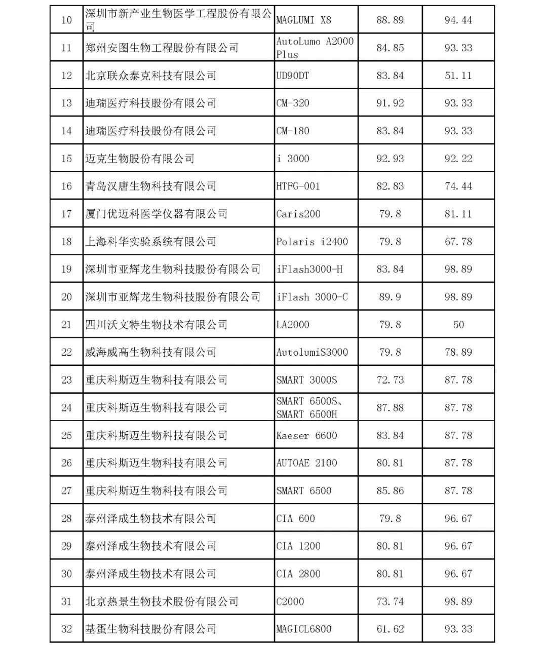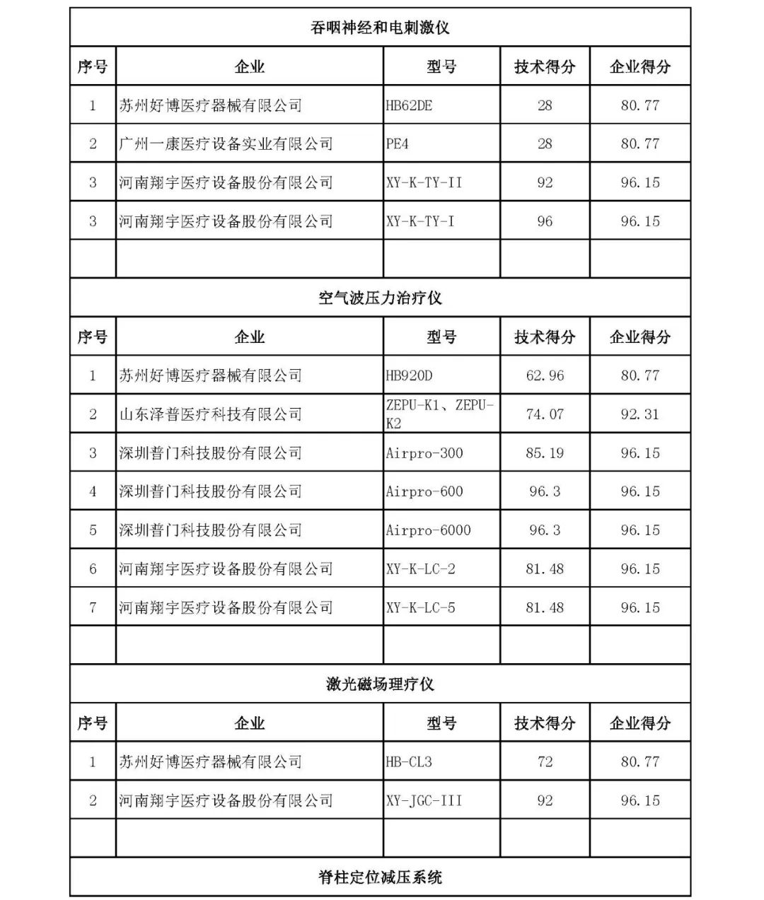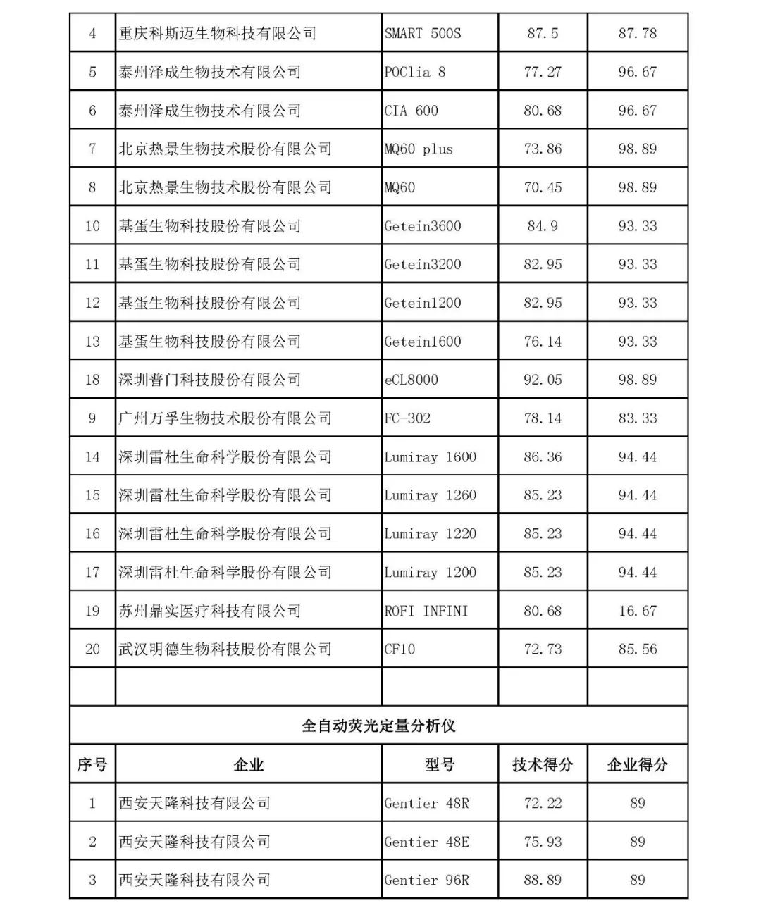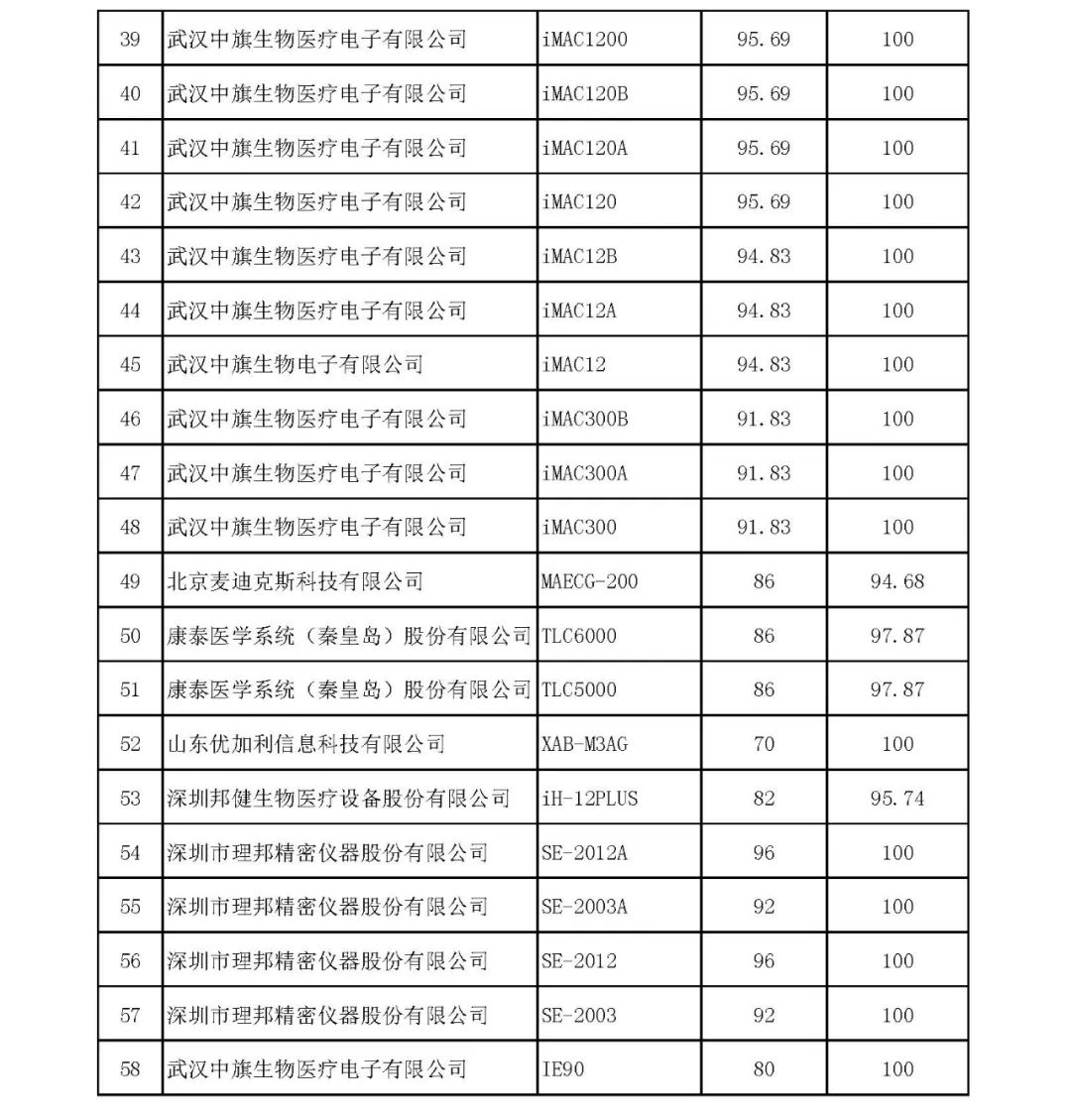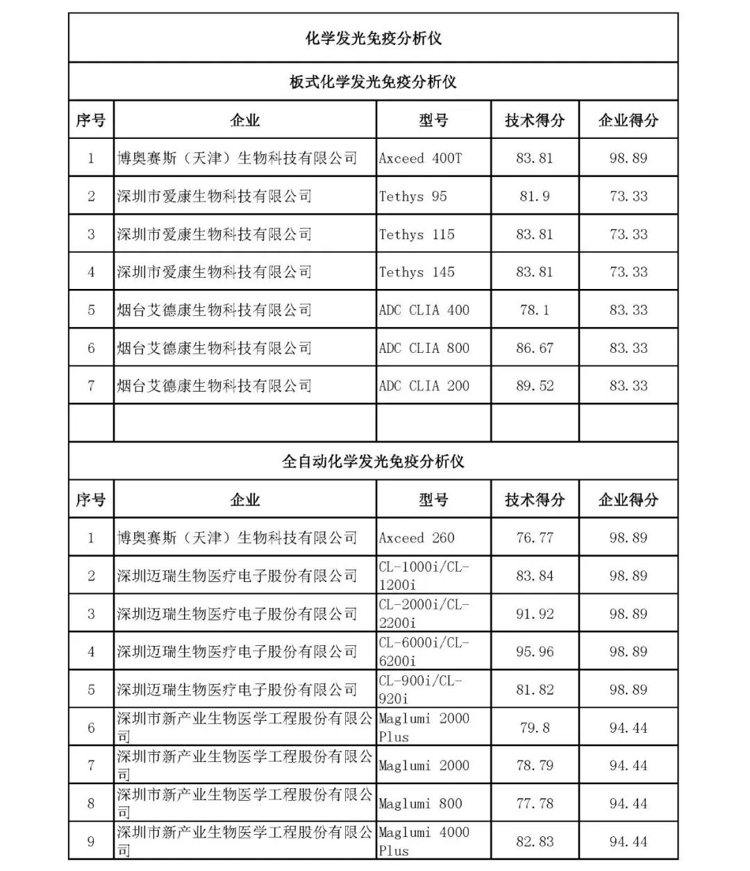 第六批优秀国产医疗设备产品遴选已完成部分品目的技术参数、企业情况评审工作。根据遴选公告要求,现将评审结果公示。 一、公示品目 化学发光免疫分析仪、全自动荧光定量基因扩增仪、口腔CT、康复设备、心电图机。 本次公示评审结果为百分制,合格分值为80分及以上。 二、公示时间 公示时间为2020年5月21日至2020年5月28日。 三、质疑 如有质疑(申诉),请在公示期内发送正式质疑(申诉)函件,内容包括质疑(申诉)条款、说明、佐证资料等并加盖公章,相关材料请发到邮箱15801485136@163.com。 四、联系方式 地 址:北京市海淀区知春路68号领航科技大厦 邮 编:100086 联系人:曾凯 赵小瑞 联系电话:010-88393651