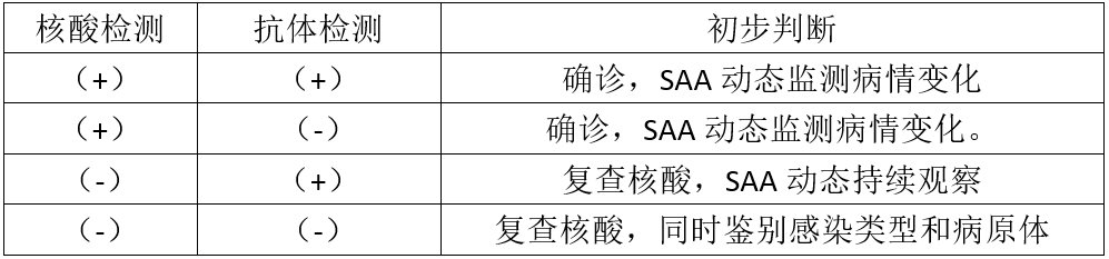 新冠病毒可能是人类历史上最难应付的病毒,它的传播力很强,而且存在新冠病毒无症状感染者,他们没有临床症状,病原学检测却呈阳性,给疫情防控带来了挑战。近日,北京一女子被查出新冠病毒核酸阳性而情绪崩溃的视频在网络上快速传播,并引起社会热烈讨论,该女子最后被确诊为无症状感染者。 新冠病毒狡猾多变,临床表现多样,因此很难及时发现。目前对于新冠肺炎筛查的实验室指标主要有抗体检测和病毒核酸检测,但两种筛查结果都有一定的局限性,不能做到100%准确率。 一、关于核酸检测 新冠病毒核酸检测是确诊新冠肺炎的“金标准”,但核酸检测的准确性也屡屡收到质疑。 相关专家指出:核酸检测存在假阳性和假阴性,尤其是假阴性不可避免。这可能与标本采集的时机、采样的类型、人员的操作、标本的运输和处理、试剂质量等因素有关。 另外对于患者发病的时长问题也是核酸检测无法精准检出的。同时新冠病毒的变异也可能导至结果假阴性。因此,在《新型冠状病毒核酸和抗体检测临床应用专家共识》中明确:核酸阴性结果不能排除新型冠状病毒感染,需要排除可能产生假阴性的因素。 二、关于抗体检测 (图源:网络) 新型冠状病毒肺炎发病3~5 d后,血清特异性抗体逐渐产生,首先出现的是免疫球蛋白IgM抗体,然后出现IgG抗体。《新型冠状病毒肺炎诊疗方案(试行第七版)》中明确如果疑似病例血清特异性IgM和IgG抗体阳性,IgG抗体由阴性转为阳性或恢复期较急性期有4倍及以上升高,则可以诊断其感染了新型冠状病毒。疑似病例的排除标准,需要同时满足病毒核酸检测结果阴性,以及发病7 d后新型冠状病毒IgM和IgG抗体仍为阴性两个条件。 但在目前的多项研究中发现,有些患者无法观察到新型冠状病毒IgG抗体出现4倍及以上升高,在《新型冠状病毒核酸和抗体检测临床应用专家共识》中也明确:血清特异性抗体阳性并不能说明患者无传染性,抗体的出现不能作为出院的标准。抗体检测主要用于回顾性诊断及对核酸检测结果存疑时的辅助诊断,不能用于新型冠状病毒肺炎的确诊和排除,仅在无法使用RT-PCR时才建议使用血清学进行诊断,不适用于一般人群的筛查。 另外,抗体检测可能会因为标本中存在干扰物质(如类风湿因子、嗜异性抗体、补体、溶菌酶等)、标本溶血、标本被细菌污染、标本凝固不全残留有纤维蛋白原等因素影响而出现“假阳性”结果。同时,由于血清学方法存在一定的窗口期以及检测试剂盒灵敏度不同也会出现“假阴性”结果。 核酸和抗体检测结果不能作为新型冠状病毒肺炎确诊和排除的唯一依据,应结合患者流行病学史、临床症状和其他实验室检查综合判断。 三、关于血清淀粉样蛋白A(SAA) (图源:网络) 血清淀粉样蛋白A(SAA),一种急性时相反应蛋白,在机体受到感染时最快4小时就能明显升高,当病原体清除后SAA能够迅速下降到正常水平。SAA对病毒感染有着非常高的敏感性,目前临床上常用于感染性疾病的早期诊断,鉴别诊断,病情监测及预后评估等方面。在新冠肺炎患者中SAA水平也显著升高,且病情越严重SAA升高幅度越大。 新冠疫情以来,多家医疗机构进行了SAA与新冠肺炎相关性的研究发现:
