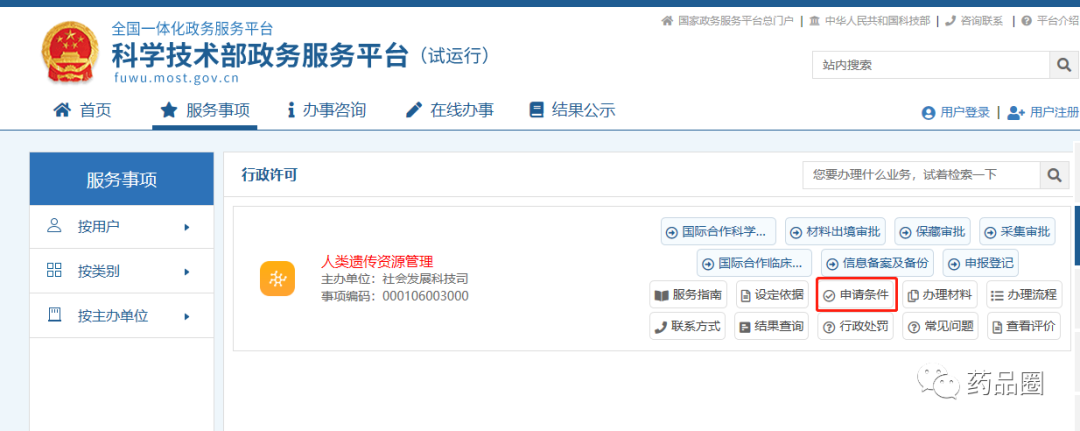 一、中国人类遗传资源采集审批 (一)申请人条件 具有法人资格的中方单位。 (二)审批条件 1.申请开展中国人类遗传资源采集活动应具备或符合如下条件: (1)具有法人资格; (2)采集目的明确、合法; (3)采集方案合理; (4)通过伦理审查; (5)具有负责人类遗传资源管理的部门和管理制度; (6)具有与采集活动相适应的场所、设施、设备和人员。 2.禁止性要求:申请开展中国人类遗传资源采集活动,不符合上述条件的,不予批准。 二、中国人类遗传资源保藏审批 (一)申请人条件 具有法人资格的中方单位。 (二)审批条件 1.申请开展中国人类遗传资源保藏活动应具备或符合如下条件: (1)具有法人资格; (2)保藏目的明确、合法; (3)保藏方案合理; (4)拟保藏的人类遗传资源来源合法; (5)通过伦理审查; (6)具有负责人类遗传资源管理的部门和保藏管理制度; (7)具有符合国家人类遗传资源保藏技术规范和要求的场所、设施、设备和人员。 2.禁止性要求:申请开展的人类遗传资源保藏活动,不符合上述条件的,不予批准。 三、中国人类遗传资源国际合作科学研究审批 (一)申请人条件 1.具有法人资格的中方单位、外方单位。 2.港澳台组织及港澳台组织、个人设立或者实际控制的机构参照外方单位进行管理。 (二)审批条件 1.申请利用中国人类遗传资源开展国际合作科学研究应具备或符合如下条件: (1)对中国公众健康、国家安全和社会公共利益没有危害; (2)合作双方具有开展相关工作的基础和能力; (3)合作研究目的和内容明确、合法,期限合理; (4)合作研究方案合理; (5)拟使用的人类遗传资源来源合法,种类、数量与研究内容相符; (6)通过合作双方各自所在国(地区)的伦理审查; (7)研究成果归属明确,有合理明确的利益分配方案。 申请利用中国人类遗传资源开展国际合作科学研究,应当由中国境内依法成立的法人单位办理报批手续。同一国际合作科学研究,涉及两个以上中国境内法人单位的,应当合并办理报批手续,不得拆分报批。 利用中国人类遗传资源开展国际合作,双方均应通过各自所在国(地区)的伦理审查。对于开展多中心临床试验的,医疗机构(组长单位)通过伦理审查即可办理报批手续;参与医疗机构在组长单位取得行政许可后,将本单位伦理审查认可或同意的批件及本单位签字盖章的承诺书提交至科学技术部,即可开展国际合作临床试验。 对于已获得许可利用中国人类遗传资源开展国际合作涉及变更的,获得变更审批决定前可按照原获批事项开展研究,变更的事项应在获得同意变更审批决定后方可开展。 2.利用中国人类遗传资源开展国际合作科学研究,确需将中国人类遗传资源材料运送、邮寄、携带出境的,应符合《中华人民共和国人类遗传资源管理条例》第二十七条规定的条件,并可以在国际合作科学研究申请中列明出境计划,一并提出申请。 3.禁止性要求:申请利用中国人类遗传资源开展国际合作科学研究,不符合1 所列条件的,不予批准 四、中国人类遗传资源材料出境审批 (一)申请人条件 具有法人资格的中方单位。 (二)审批条件 1.申请将中国人类遗传资源材料运送、邮寄、携带出境应具备或符合如下条件: (1)对我国公众健康、国家安全和社会公共利益没有危害; (2)具有法人资格; (3)有明确的境外合作方和合理的出境用途; (4)人类遗传资源材料采集合法或者来自合法的保藏机构; (5)通过伦理审查; 2.禁止性要求:申请将中国人类遗传资源材料运送、邮寄、携带出境,不符合上述条件的,不予批准。 五、中国人类遗传资源国际合作临床试验 适用于为获得相关药品和医疗器械在我国上市许可,在临床机构利用我国人类遗传资源开展国际合作临床试验、不涉及人类遗传资源材料出境的。 “在临床机构”包括: (一)所涉及的人类遗传资源仅在临床机构内采集、检测、分析和剩余样本处理等; (二)所涉及的人类遗传资源在临床机构内采集,由临床机构委托的单位进行检测、分析和剩余样本处理等。临床机构应与其委托的单位签署正式协议,明确委托检测和分析的人类遗传资源材料的种类、数量、检测内容、转运方式、剩余样本和数据信息处理方式等,并对其委托的活动负责。 六、中国人类遗传资源信息对外提供或开放使用 适用于将人类遗传资源信息向外国组织、个人及其设立或者实际控制的机构提供或开放使用。 申请单位应为中方单位。 |