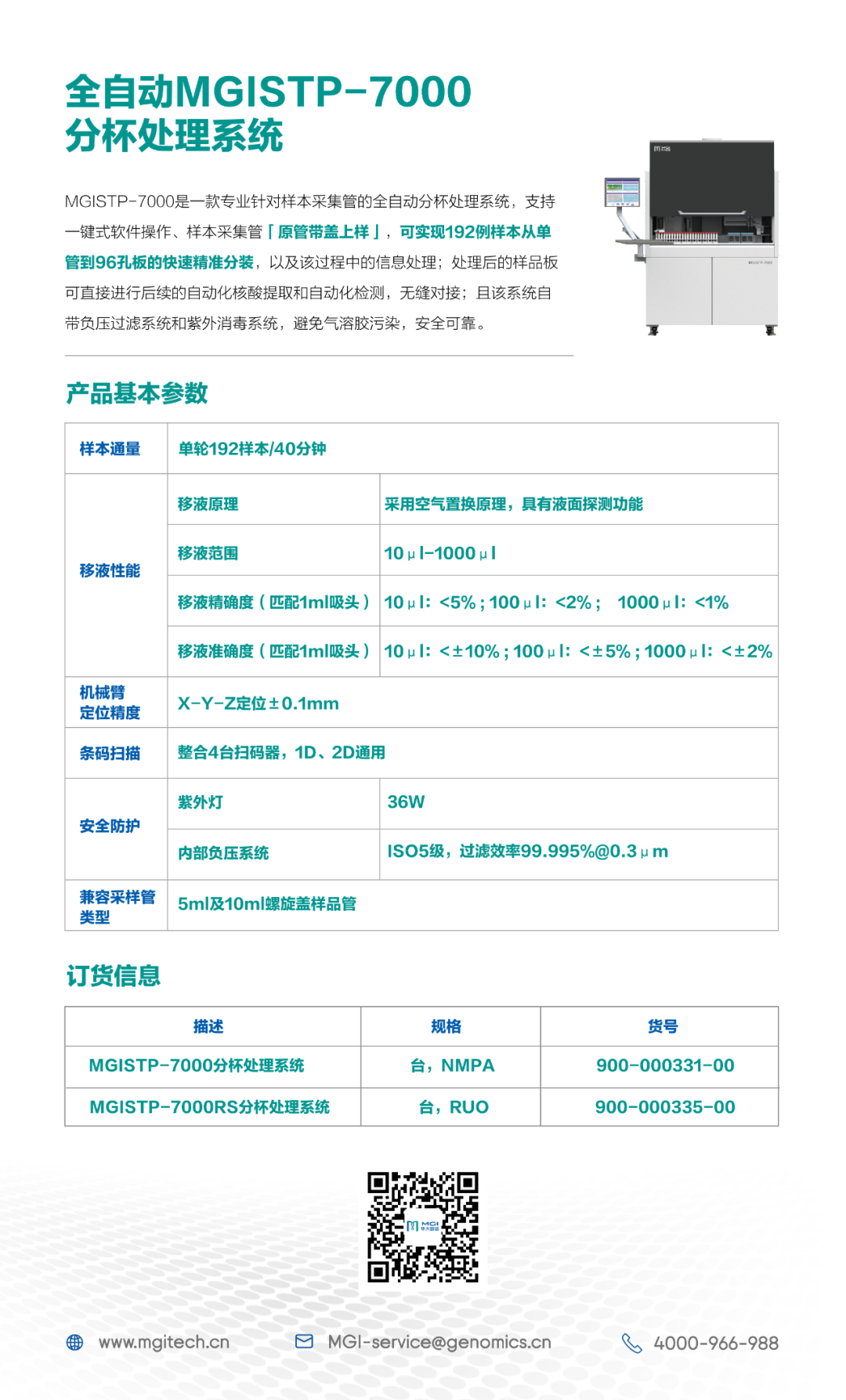 全自动MGISTP-7000分杯处理系统可在40分钟内完成192例样本的全自动样本分装工作,支持灭活后的样本采集管“原管带盖上样”,支持自动化开盖和关盖、自动化条码信息录入,同时内置负压过滤系统,安全可靠。