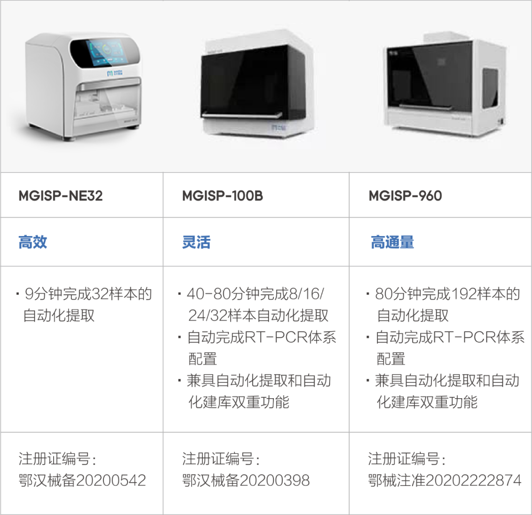 MGISP系列自动化产品家族自2015年起投入研发,2017年正式发布,2018年起规模化量产并陆续获证,销往全球。作为全球火眼实验室的“标配”,MGISP系列自动化核酸提取仪支援了数百万例样本的新冠筛查,灵活高效、安全可靠,值得信赖。