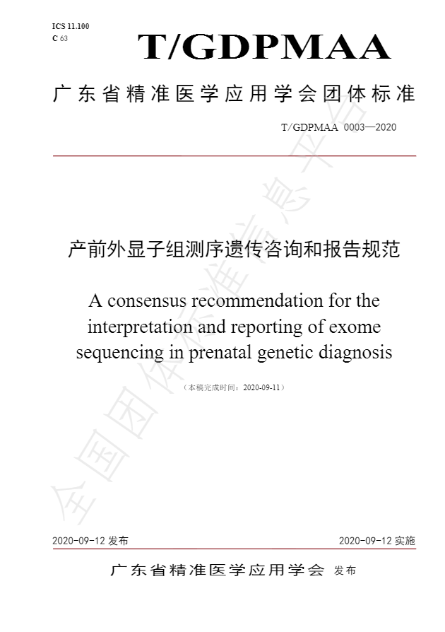 《产前外显子组测序遗传咨询和报告规范》团体标准发布会暨专项培训会圆满落幕 团体标准正式发布 2020年9月12日,是中国第16个预防出生缺陷日,在这个特殊意义的日子里,广东省精准医学应用学会联合广东省妇幼保健院举办2020年预防出生缺陷日“同心抗疫、护佑新生”主题宣传活动,并发布了全国首个高通量测序技术在产前诊断领域的团体标准——《产前外显子组测序遗传咨询和报告规范》。 外显子组测序是用于检测和分析存在于基因或基因组中某些变异的高通量测序技术,根据现在国内外大量的临床数据表明,超声结构异常的胎儿中,在传统遗传学检测(核型分析+染色体微阵列)结果阴性的案例中,采用外显子组测序可以额外检出约30%的可能与疾病相关的变异。这项新技术逐步推广给产前诊断、出生缺陷防治领域带来了前所未有的机遇和活力,但由于缺乏行业标准,这一技术的产前运用也面临着极大的风险和挑战。 《产前外显子组测序遗传咨询和报告规范》团体标准主编、广东省妇幼保健院医学遗传中心主任、广东省精准医学应用学会遗传病分会主任委员尹爱华教授明确提出,产前高通量技术的应用缺乏标准和规范,遗传咨询医师的数量和专业能力严重不足,遗传咨询能力也相对较弱,对于新技术在产前诊断领域应用的局限性、风险了解不足,导至过度应用、过度干预、片面解读、错误解读等不良后果,因此制定《产前外显子组测序遗传咨询和报告规范》团体标准非常必要。 为了规范推进我国产前外显子组测序技术的临床应用,使高通量测序技术更好的为产前诊断服务,由广东省精准医学应用学会遗传病分会主委单位广东省妇幼保健院牵头,联合全省多家产前诊断机构、以及多名业内知名专家共同起草完成的《产前外显子组测序遗传咨询和报告规范》团体标准于2020年9月12日凌晨重磅发布! 团体标准发布仪式 点击下方“链接”下载团体标准 |