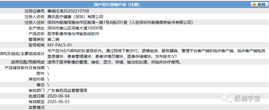 而在今年年中,腾讯也拿到了一张软件方面的医疗器械注册证