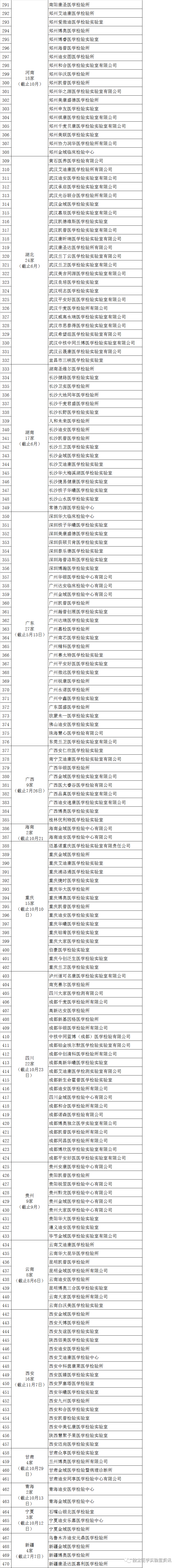 据统计,获得核酸检测资质的第三方医检机构共有470家,其中金域32家、迪安31家、艾迪康20家、华大12家、华银4家、凯普17家、博奥14家、千麦11家、达安6家、和合7家、大家医学6家、好医7家、兰卫6家、美康6家,具体名单如下: