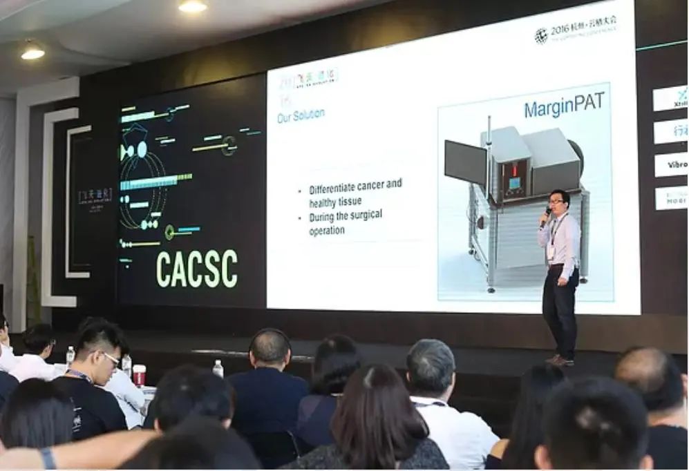 (图:MarginPAT 参加2016 阿里云栖大会) (图片来源:Vibronix官网) Vibronix从美国国立卫生院,印第安纳州政府,还有多次商业大赛的获奖共募集约35万美金的启动资金,同时吸引了多名硅谷资深医疗器械从业者的加盟,共同将MarginPAT系统推向产业化。 AcouStar 柔性组织术中导航系统 与此同时,Vibronix还在2016年开发了另一种产品AcouStar。 2015年,全球有231,840例新的浸润性乳腺癌病例,还有60,290例非浸润性乳腺癌病例。对于外科医师来说,在肿瘤切除手术中准确定位肿瘤非常具有挑战性,特别是当肿瘤不可触及时。 一般情况下,我们使用乳房X线照片和磁共振成像用于诊断和定位乳腺肿瘤块,但是这些技术体积庞大,无法在手术室中使用。由于当前技术总是无法提供植入设备的准确位置,也无法提供该位置的实时视觉反馈。因此,一般的切除术可能会导至较高的再次切除率和不断延长的手术时间。 王璞介绍AcouStar是一款具有增强现实技术的光声型纤维导管,可以以亚毫米级的精度定位肿瘤,并且团队通过进一步部署增强现实(AR)系统,可以将将获得的肿瘤位置转换为平板电脑或头戴式显示器上直观且准确的视觉提示。由于这些优点,该技术能最大程度减少手术时间并降低再切除率的能力。 项目进程 2016年6月30日Vibronix的AcouStar系统获得了NSF SBIR第一阶段的经费; 2016年11月该项目成功入围MIT-CHIEF 的商业计划书大赛总决赛; 2017年春季,在经过三个月的硅胶乳房模型测试后,其团队成功使用AcouStar准确地在尸体中切除了“肿瘤”; 2019年4月17日AcouStar系统获得了NSF SBIR第二阶段经费。 相干拉曼超高速药敏检测仪 抗生素滥用导至的细菌耐药性蔓延是全球医疗的重要问题,用药敏实验进行药物敏感度的测定,以便准确有效的利用药物进行治疗。目前,临床微生物实验室进行药敏试验的方法主要有纸片扩散法,稀释法(包括琼脂和肉汤稀释法),抗生素浓度梯度法(E-test法),和自动化仪器等。 2017年3月,Vibronix进入中国市场推广,一方面进行代谢法药敏检测技术的研发注册,另一方面自主研发了代谢法解决方案,无需通过增殖即可判定抗生素效果。 VibroniX的相干拉曼超高速药敏检测仪器将最少一天的检测时间缩短到2个小时内,大大提升了药敏检测的效率,据介绍“我们的相干拉曼超高速药敏检测灵敏度极高,通过设备显示屏能够直接观测单细菌的化学键成像。” 在2020年DEMO CHINA创新中国路演中,王璞分析了快速药敏的市场规模较大,每年有百万人以上死于耐药菌感染,药敏检测每年高达一千六百万例。 目前相干拉曼设备已经开始进行科研市场的销售,而平台中的光学辅助超声导航的产品AcuSee 已于2020年10月7日拿到了FDA认证,将陆续布局国内外市场,王璞幽默地笑了笑说:“这比我们预期的还要快!” 据悉VibroniX的产品也主要面向欧、美、日三个市场为主,直接销售给医院。“Vibronix计划快速布局国内外的市场销售,将在明年完成千万元的销售额。”王璞表示接下来Vibronix将进一步突破已有渠道,拓宽市场。