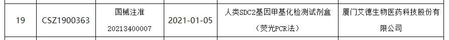 摘要: 1月13日,据国家药品监督管理局政务服务门户网站消息,厦门艾德生物“人类SDC2基因甲基化检测试剂盒(荧光PCR法)”正式获批。据艾德生物官方微信消息,该试剂盒商品名为“畅青松”,主要用于肠癌早期发现 ...