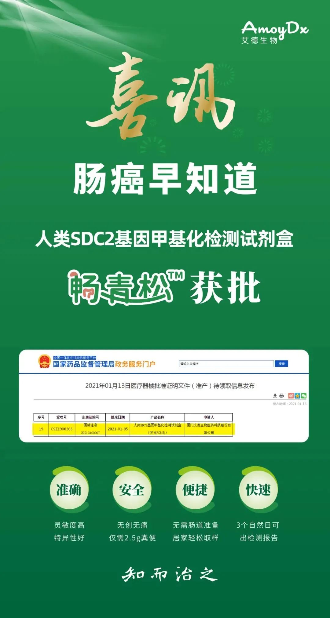 快讯|艾德生物肠癌早期检测试剂盒正式获批