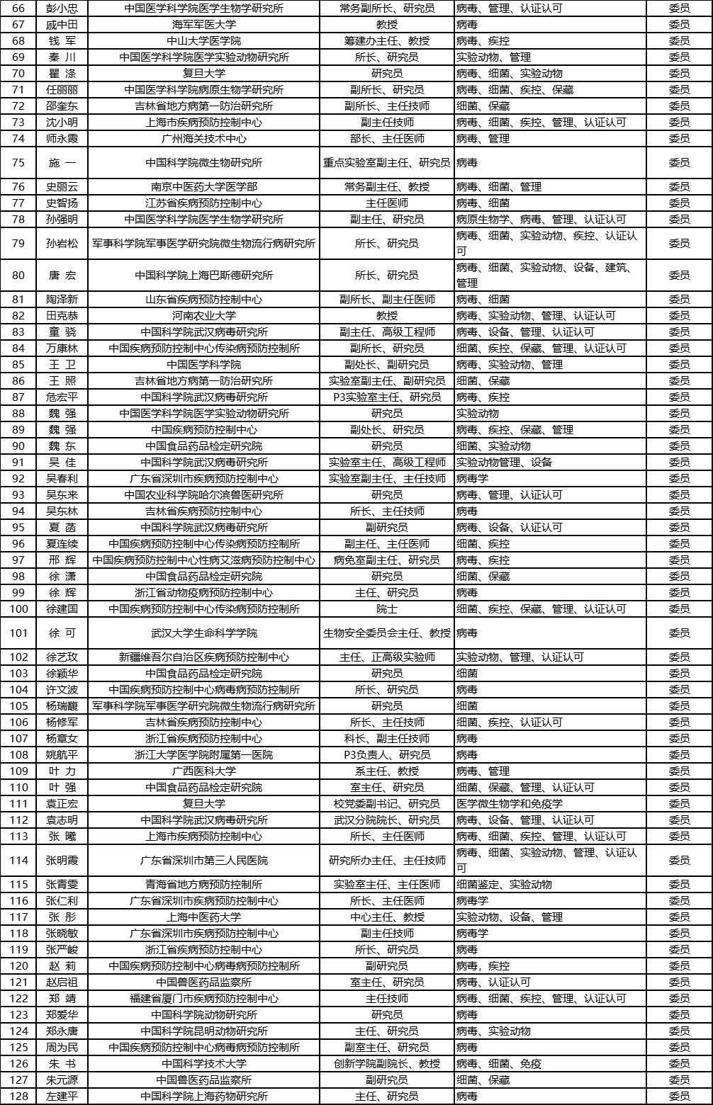 高福、陈薇等入选第三届国家人间传染的病原微生物实验室生物安全评审专家委员会名单