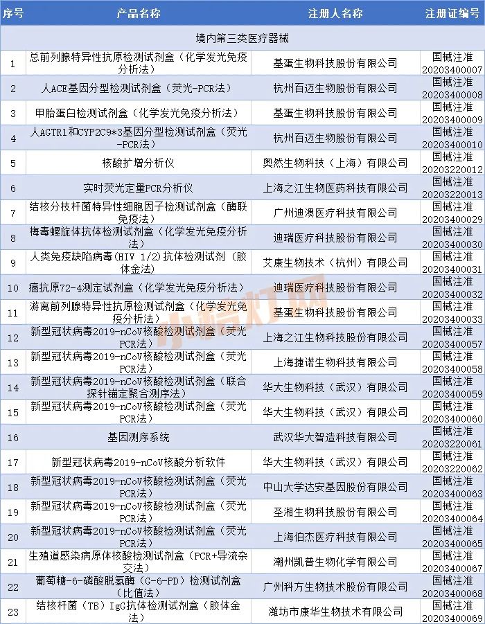 2020年,国家药品监督管理局共批准注册IVD产品438个。其中,境内第三类IVD产品325个,进口第三类IVD产品18个,进口第二类IVD产品95个。