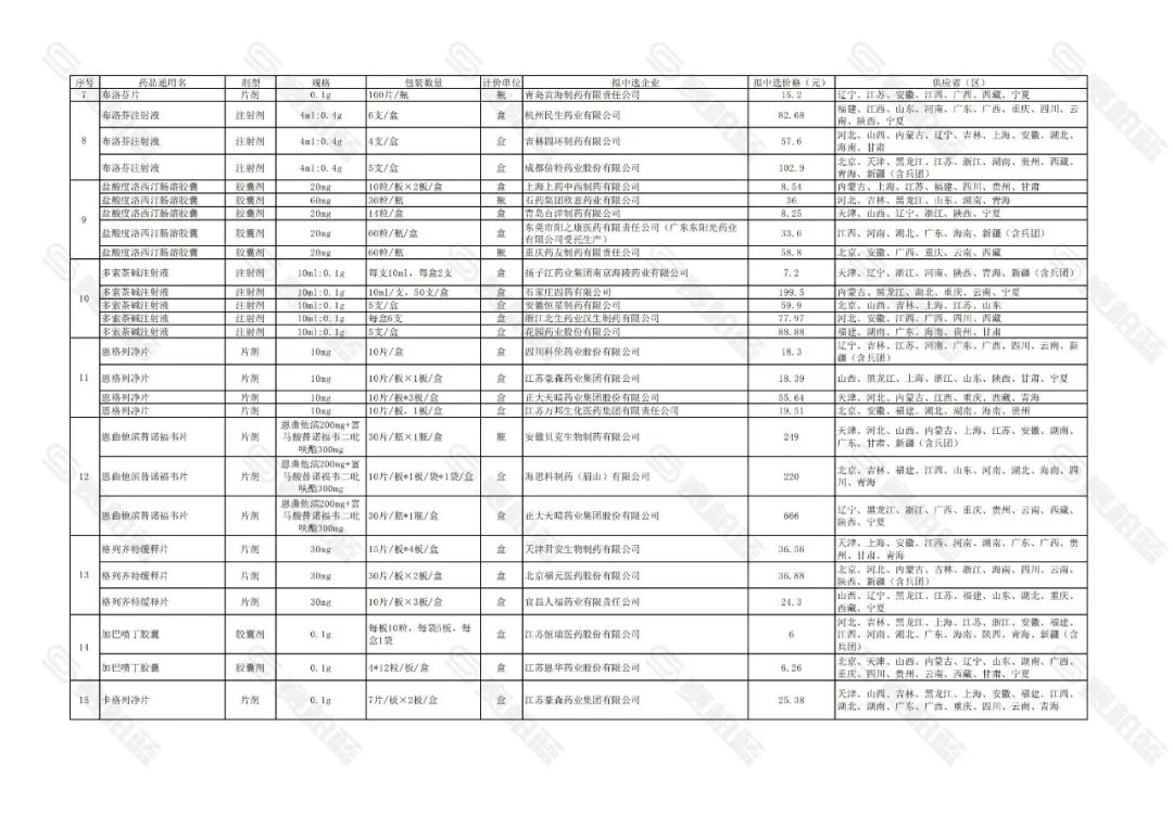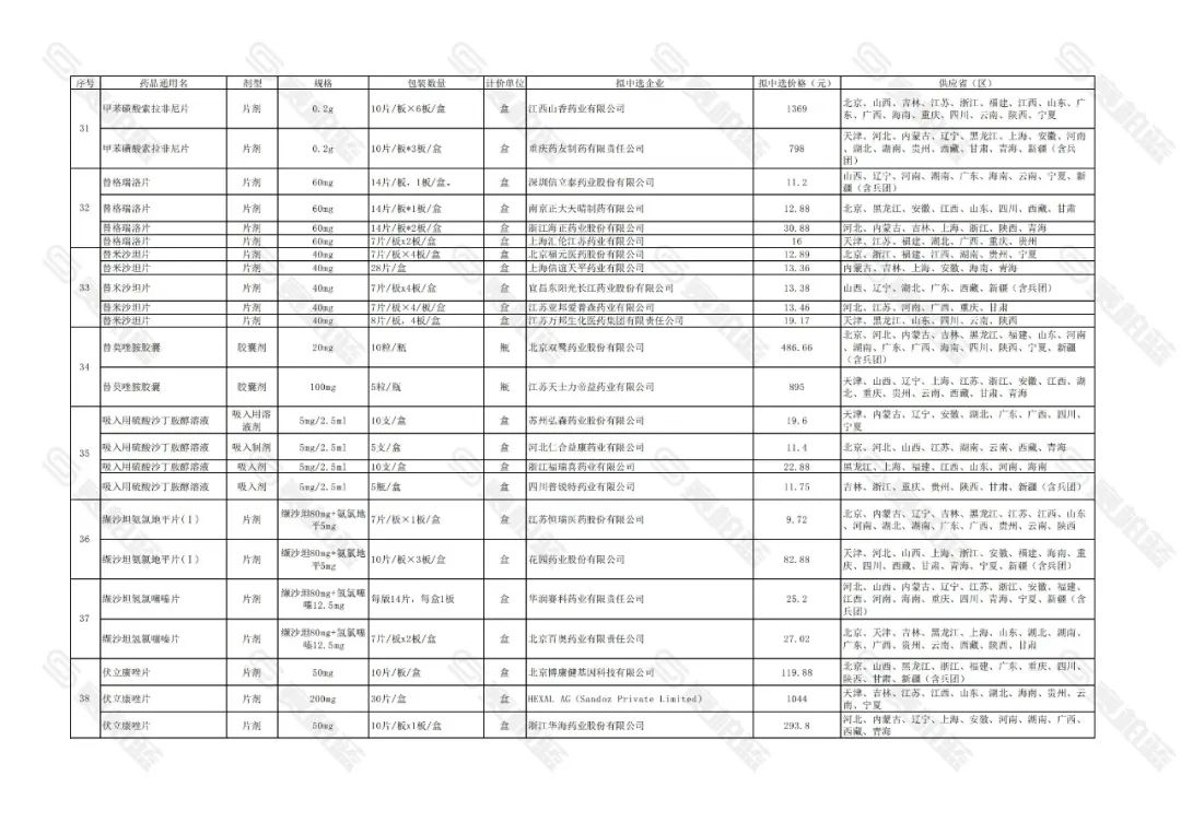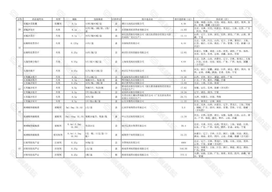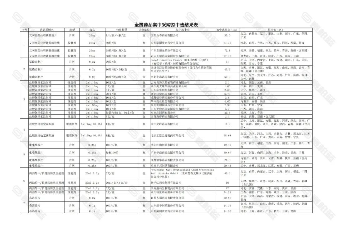 刚刚,上海阳光医药采购网正式发布第四批国采拟中选结果,公示期为2月4日至2月7日。按照此前的规律,公示期后,第四批国采正式中选结果就将确认。据悉,5月前后,第四批国采有望落地。 资料显示,第四批国采的45种药品,全部采购成功,涉及高血压、糖尿病、消化道疾病、精神类疾病、恶性肿瘤等疾病领域。拟中选药品平均降价52%,最高降幅达96%,为齐鲁制药的注射用帕瑞昔布钠(40mg/瓶),单价3块5。据初步测算,第四批药品集采预计1年节约药费124亿元。第四批国采共有152家企业参加,产生拟中选药企118家,拟中选产品158个,企业拟中选比例达71%,相较于前几批,明显提高。在此次竞标的企业中,共有21家外资企业参与报价,最终,5家外企有品种中选,分别是:赛诺菲的氨磺必利片(0.2g*20片);费森尤斯卡比的丙泊酚中/长链脂肪乳注射液(0.2g*5),费森尤斯卡比此次以49.3元的同组最低价中选,这一价格甚至低于扬子江、江苏盈科和四川科伦;卫材的洛索洛芬钠片(60mg*20片)以5.52元的价格拟中选;Aurobindo Pharma Limited的泮托拉唑肠溶片(40mg*30片)以19.86元的居中价格拟中选;HEXAL AG(Sandoz Private Limited)的伏立康唑片(200mg*30片)以1044元的价格中选。值得注意的是,根据米内网数据,第四批国采的45个品种中,有21个药品有原研厂家,其中11个药品的原研厂家在2019年中国公立医疗机构终端竞争格局中的市场份额超过50%。比如诺和诺德的瑞格列奈口服常释剂型(市占率58.28%),阿斯利康的艾司奥美拉唑口服常释剂型(市占率82.16%),辉瑞的帕瑞昔布注射剂(市占率60.59%),费森尤斯卡比的丙泊酚中/长链脂肪乳注射液(市占率61.92%),诺华的缬沙坦氨氯地平Ⅰ口服常释剂型(市占率100%),阿斯利康的替格瑞洛口服常释剂型(市占率97.64%),施维雅的格列齐特缓释控释剂型(79.29%),第一三共的左氧氟沙星口服常释剂型(市占率55.27%)等,其中缬沙坦氨氯地平Ⅰ口服常释剂型、替格瑞洛口服常释剂型基本由原研厂家独占。不难看出,随着第四批国采的落地,上述品种,除丙泊酚中/长链脂肪乳注射液之外,其余药品的原研产品市场份额在第四批国采采购期内,将由其他中选的国内仿制药企业分割。截至目前,国家组织药品集采常态化几成定局,国采通过以量换价,压缩药价水分,实现仿制药对于原研药的院内替代,原研药企开始转变策略,战略性放弃国采市场,依托品牌优势将产品转向零售终端等院外市场,并重点布局创新药的院内开发,而这些使用量大的临床常用品种的院内份额将逐渐由国内药企占据。第四批国采在拟中选产品中,上市公司、外资企业、百强企业等公司的产品占62%。据米内网此前统计,在第四批国采中,过评品种达3个及以上的企业有12家,齐鲁制药、扬子江药业均以7个过评品种领跑,中国生物制药、石药集团涉及的过评品种分别有6个、5个,豪森药业、科伦药业、东阳光药及复星医药均有4个过评品种在列,倍特药业、百奥药业、福元医药及恒瑞医药各有3个品种涉及。在此前的国采中表现突出的齐鲁,在第四批集采中涉及7个品种,分别为——氨磺必利片、注射用帕瑞昔布钠、注射用硼替佐米、普瑞巴林胶囊、盐酸特比萘芬片及注射用比伐芦定、盐酸普拉克索片。 根据第四批国采拟中选结果,齐鲁制药最终拟中选的品种有6个,分别为:注射用帕瑞昔布钠、注射用硼替佐米、盐酸普拉克索片、普瑞巴林胶囊、盐酸特比萘芬片、注射用比伐芦定。其中,齐鲁制药的盐酸普拉克索片、普瑞巴林胶囊及注射用比伐芦定三个品种均于2020年获批上市,此次成功中标,有望迅速打开市场。 扬子江药业拟中选的品种有:丙泊酚中/长链脂肪乳注射液、多索茶碱注射液、氯雷他定片、注射用帕瑞昔布钠、注射用泮托拉唑钠、玻璃酸钠滴眼液6个。其中,多索茶碱注射液、玻璃酸钠滴眼液于2020年获批上市,丙泊酚中/长链脂肪乳注射液于2021年获批,也有望通过第四批国采迅速切入市场。科伦药业此次表现不错,恩格列净片、丙泊酚中/长链脂肪乳注射液、注射用帕瑞昔布钠、盐酸氨溴索注射液4个药品拟中标第四批全国药品集采。一项积极参与的中国生物制药拟中选的品种有:艾司奥美拉唑镁肠溶胶囊、恩格列净片、恩曲他滨替诺福韦片、卡格列净片、注射用硼替佐米、替格瑞洛片6个。 此外,东阳光控股子公司盐酸度洛西汀肠溶胶囊、左氧氟沙星片等4个药品参与全国药品集中采购并确认拟中选。据兴业证券统计,回顾过去三批全国药品集采,共涉及112个品种,中选产品平均降幅达到54%,截至2020年实际采购量已经达到协议采购量的2.4倍,节约费用整体超过1000亿元。按照常态化制度化开展药品集中带量采购工作的要求,今后,国家组织药品集中采购范围将持续扩大。此前在第四批集采即将推行之际,国务院办公厅发布《关于推动药品集中带量采购工作常态化制度化开展的意见》,进一步明确药品集采的常态化机制。文件明确重点将基本医保药品目录内用量大、采购金额高的药品纳入采购范围,逐步覆盖国内上市的临床必需、质量可靠的各类药品,做到应采尽采。除了符合条件的药品外,此次文件也提出将积极探索“孤儿药”、短缺药的适宜采购方式,可以看到只要是临床存在需求的产品,未来都将可能纳入集采的范围。 兴业证券预计未来对于尚未有一致性评价通过的品种,也将可能尝试进行集采。值得一提的是,此次文件中提出将探索对适应