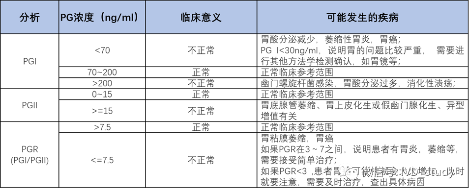 临床意义: 胃蛋白原I/II (PGI/II) 胃蛋白酶原是胃蛋白酶的前体,根据其生化性质和免疫原性将其分成2个亚群,1-5组分的免疫原性相同,称为胃蛋白酶原I,主要由胃底腺的主细胞和黏液颈细胞分泌;组分6和7被称为胃蛋白酶原II,除由胃底腺的主细胞和黏液颈细胞分泌外,贲门腺和胃窦的幽门腺的黏液颈细胞以及十二指肠上段也能产生胃蛋白酶原II。