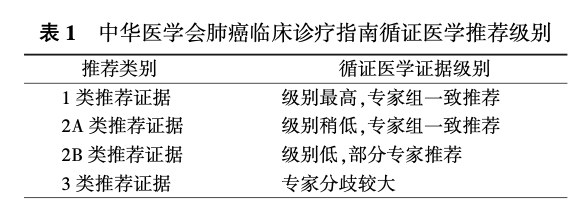 为进一步规范我国肺癌防治措施、提高肺癌诊疗水平、改善患者预后、为各级临床医师提供专业的循证医学意见,中华医学会组织呼吸内科、肿瘤内科、胸外科、放疗科、影像科和病理科专家,结合国际指南和中国国情,整合近年来肺癌病理、基因检测、免疫分子标志物检测和治疗手段等方面的新进展,制定了中华医学会肺癌临床诊疗指南(2021版),旨在为各级临床医师提供肺癌筛查、诊断、病理、治疗和随访等方面的循证医学证据和指导性意见。本指南根据循证医学级别进行了分类推荐(表1)。