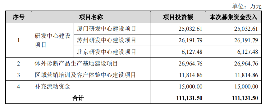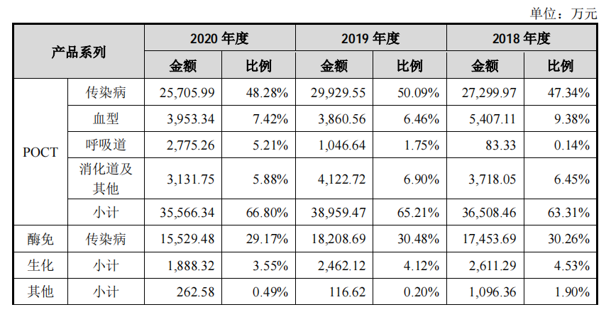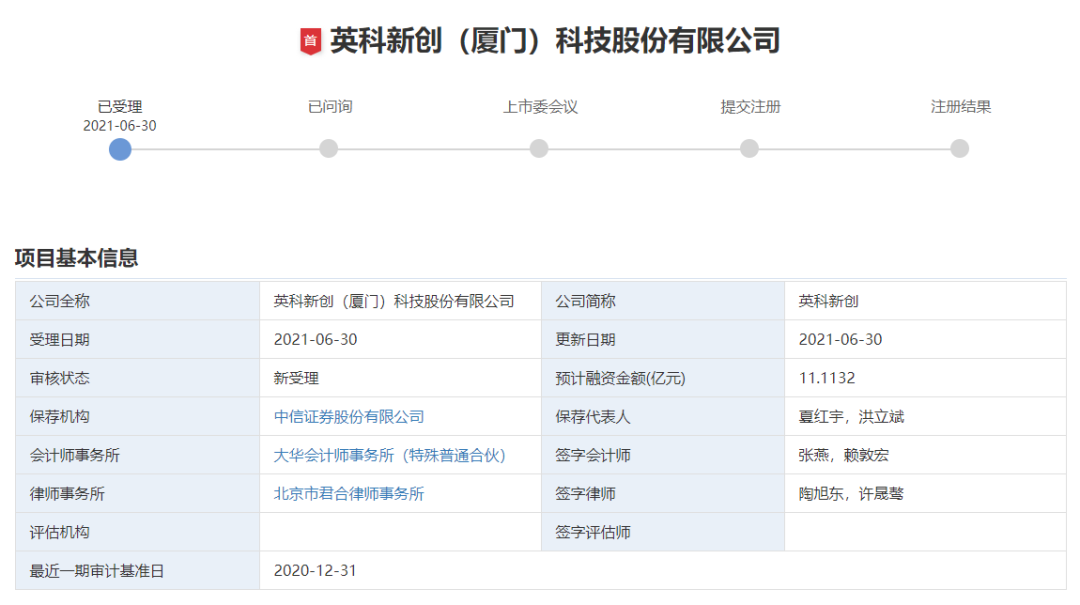 6月30日,英科新创(厦门)科技股份有限公司申报创业板获深圳证券交易所受理。 英科新创(厦门)科技股份有限公司成立于1989年,专业从事体外诊断试剂的研发、生产和营销。获得厦门市重点工业企业,技术进步先进工业企业,福建省战略性新兴产业骨干企业等称号。 经过 30 年的积累和沉淀,目前形成了 POCT 即时诊断、酶联免疫诊断、化学发光免疫诊断、生化诊断及荧光核酸检测等核心技术平台。 截至 2021年 4 月 30 日,公司已取得 127 项产品的注册证书,在临床应用上涵盖了传染病、血型、呼吸道、消化道、心脏标志物、优生优育、药物滥用及免疫疾病等领域。公司主打产品为 POCT 快速诊断试剂和酶联免疫诊断试剂,近年来公司积极布局分子诊断及化学发光产品,进一步丰富完善已有产品线。 主要财务指标: 主营产品的销售收入情况: 截至 2020 年 12 月 31 日,公司共有研发人员 136 人,专业涵盖生物化学、细胞生物学、分子生物学、免疫学、有机化学等多个领域。通过研发团队长期的自主创新和探索,依托免疫学诊断领域的强大技术背景,公司已成功开发了 POCT、酶免、生化等丰富的诊断产品系列,并拥有 56 项境内已授权专利,其中发明专利 22 项,实用新型专利34 项。 公司的销售网络覆盖全国各省市自治区,产品远销美国、欧洲、南美、非洲、中东和东南亚等八十多个国家与地区并受到广泛好评,主要产品还被列入世界卫生组织(WHO)和联合国儿童基金会等采购名录。 本次IPO拟募集资金11.11亿元,主要用途如下: |
