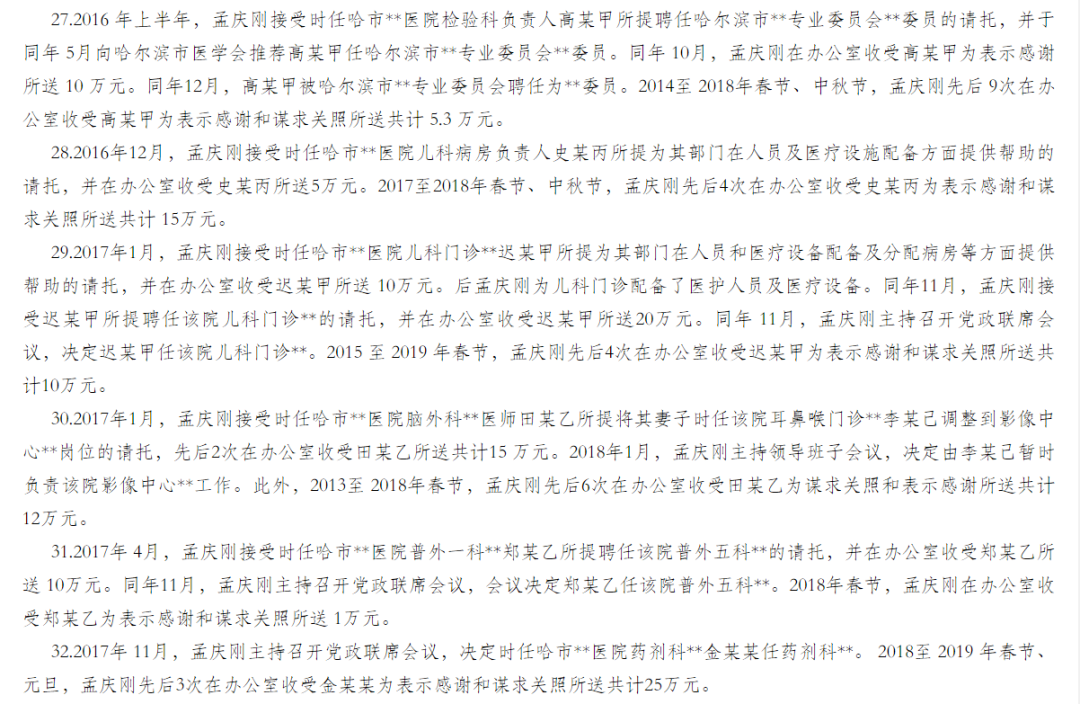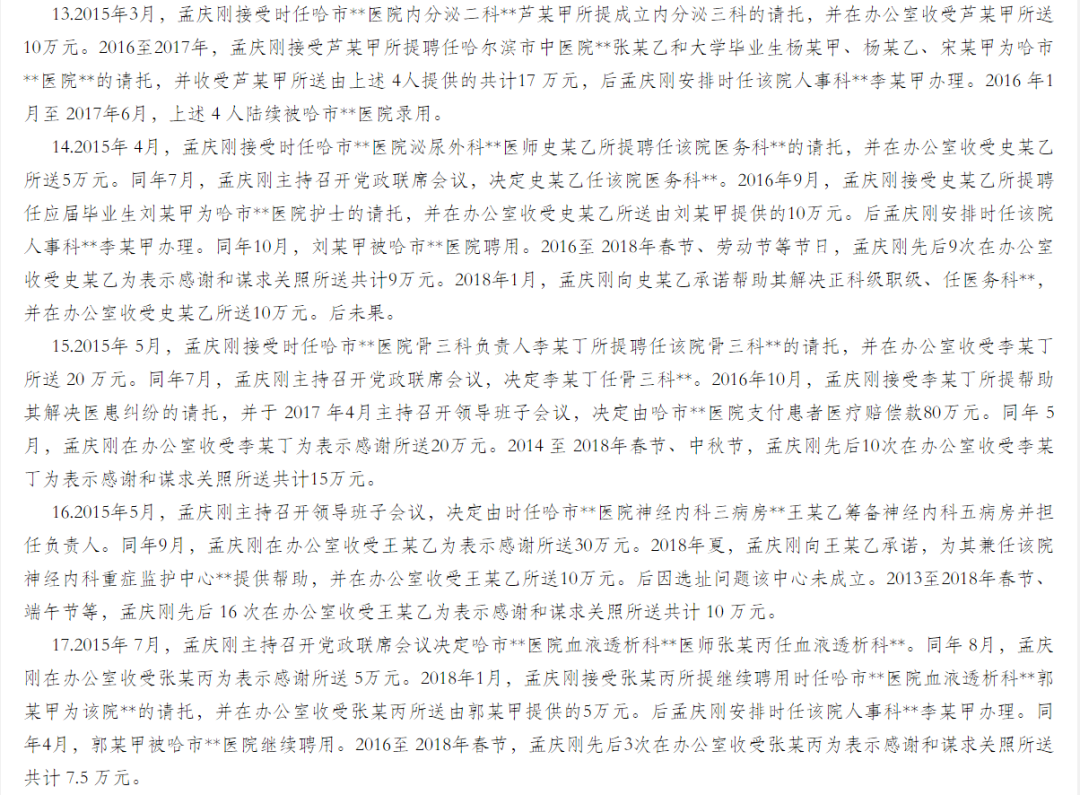 ![]() 光是内部人事安排,孟庆刚就受贿将近800万 文丨杰瑞 2100多万元,哈尔滨第一医院原院长孟庆刚的受贿金额再次刷新纪录。 7月14日,中国检察网公布的一则起诉书,披露了孟庆刚受贿的每一笔细节。起诉书显示,孟庆刚在2013-2019年任职期间,利用职权上的便利,在人员录用、医药产品采购、合作医疗等方面帮助他人谋取利益,并非法受贿共2106.9万元。 图源中国检察网 2020年11月,黑龙江省纪检委网站公告,宣布孟庆刚因涉嫌严重违纪违法正在接受审查;2021年4月,开除党籍;7月14日,起诉书正式公布。孟庆刚一案至此基本尘埃落定。 孟庆刚就任院长的同期,黑龙江省卫生系统曾持续开展多轮公立医院巡查,并先后出台多项政策整顿医生收取患者“红包”或商业回扣的行为,矛头直指医疗系统腐败的核心问题。哈尔滨市第一医院在孟庆刚的带领下,也陆续开展了多项廉洁防控工作,并取得“有效”进展。 然而,谁都没想到的是,孟庆刚才是最需要被“反腐”的对象。 医生收红包即被通报 院长却大肆受贿 在孟庆刚的起诉书中,“办公室”一词总共出现了75次,这是孟庆刚接受大部分贿赂的地点。 在这间办公室里,小到医生的人事调动、职称评定,大到医院开展合作医疗计划、招标采购,只要是带着人民币来见的,孟庆刚似乎无一回绝。 孟庆刚在医院人事任免上掌握大权,多数前来“拜访”孟庆刚的人都是在个人的职称评定或任免上有求于于他。 起诉书显示,在孟庆刚担任院长的6年间,超过30人得到了自己想要的职位,他们回报给孟庆刚的“好处费”则从几千元到30万不等。资金到位后,孟庆刚便凭借院长权力,组织召开领导班子会议,通过合法方式完成人事任免或调动。这为孟庆刚带来了将近800万的灰色收入。 讽刺的是,孟庆刚一面受贿,一面带领医院开展各种反腐倡廉行动。哈尔滨第一医院的官网“廉政防控”板块下,更是发表了众多中国历史上以清廉而流传于世的人物小传。2015年末,医院还在通过“一周自查、一月督查、次月整改、月月问效”的办法,督促各科室加强对医生违纪行为的管理和整顿。 哈尔滨第一医院逐月实名通报每个医生的收受红包情况,被通报医生红包金额从200元到10000元不等。只不过,这些金额远不及孟庆刚受贿一次的零头。 哈尔滨第一医院的确会“反腐”,只是没想到,真正应该反腐的对象,却是医院的院长。 6年2100万 知名医疗器械企业牵扯其中 在检察网公布的这份起诉书中,两项来自GE医疗代理商的行贿显得格外扎眼。 2014年,孟庆刚接受了来自医疗器械代理商刘某的请求,承诺采购前者代理销售的一款来自GE医疗的数字化血管造影系统,相应的条件是:代理商送给孟庆刚一套位于海南三亚的房产,售价142万元。 孟庆刚并没有自己拿下这套房,而是登记在他姐姐的名下。最终,GE医疗代理商刘某的造影系统以995万元的价格顺利中标。 2018年,类似的故事再一次上演。孟庆刚经朋友搭线,收取两名代理商的50万元回扣后,将该代理商手里的GE彩色超声设备以348万元的价格采购进哈尔滨一家医院。 GE医疗在中国的业务往往直接委托给地区的代理商,导至行贿事件在产品在销售过程中频频发生,而且绝大部分都是代理商所为。 高价格、大需求,这是导至医疗器械领域行贿事件屡禁不止的原因之一。曾有业内人士分析,也正因如此,从事医疗器械销售的代理商在和医生打交道时,往往“自始至终都在下套”,最终使得后者陷入无法抽身的境地。 此前曾有机构统计,在最近五年,国内涉及GE医疗的行贿案超过45起,而这种通过代理商向医院医生送回扣的方式,也已经为GE医疗赚取了近亿元的销售额,其中涉及的贿赂款更是超过了2500万元。而行贿的目标,也主要集中为各医院的院长或副院长。 自1970年代末首开中国业务至今,国内市场已经成为GE医疗的重要收入来源之一。数据显示,目前中国市场在GE医疗全球版图内占比已经超过15%。2020年,GE医疗在中国的营收已经超过20亿美元。 当前,随着国内医疗反腐的力度不断加大,以及器械集采逐渐提上日程,对于GE医疗来说,想在这样庞大的市场上站稳脚跟,同孟庆刚们沆瀣一气,是绝对不可能的。 向上滑动查看起诉书全部内容 · END · |