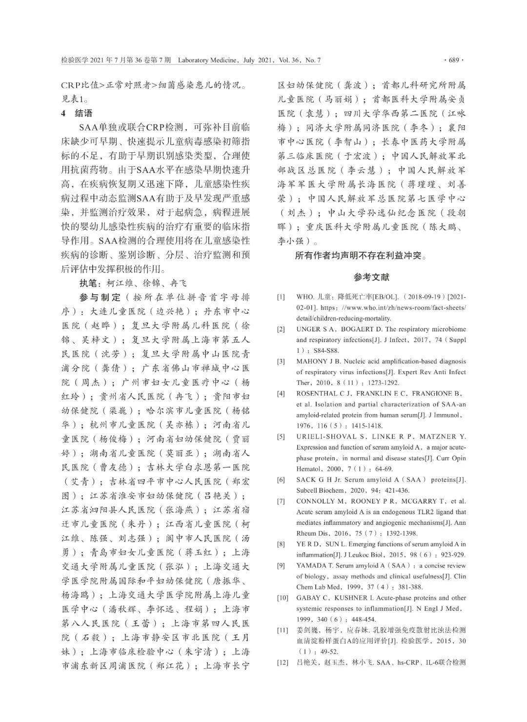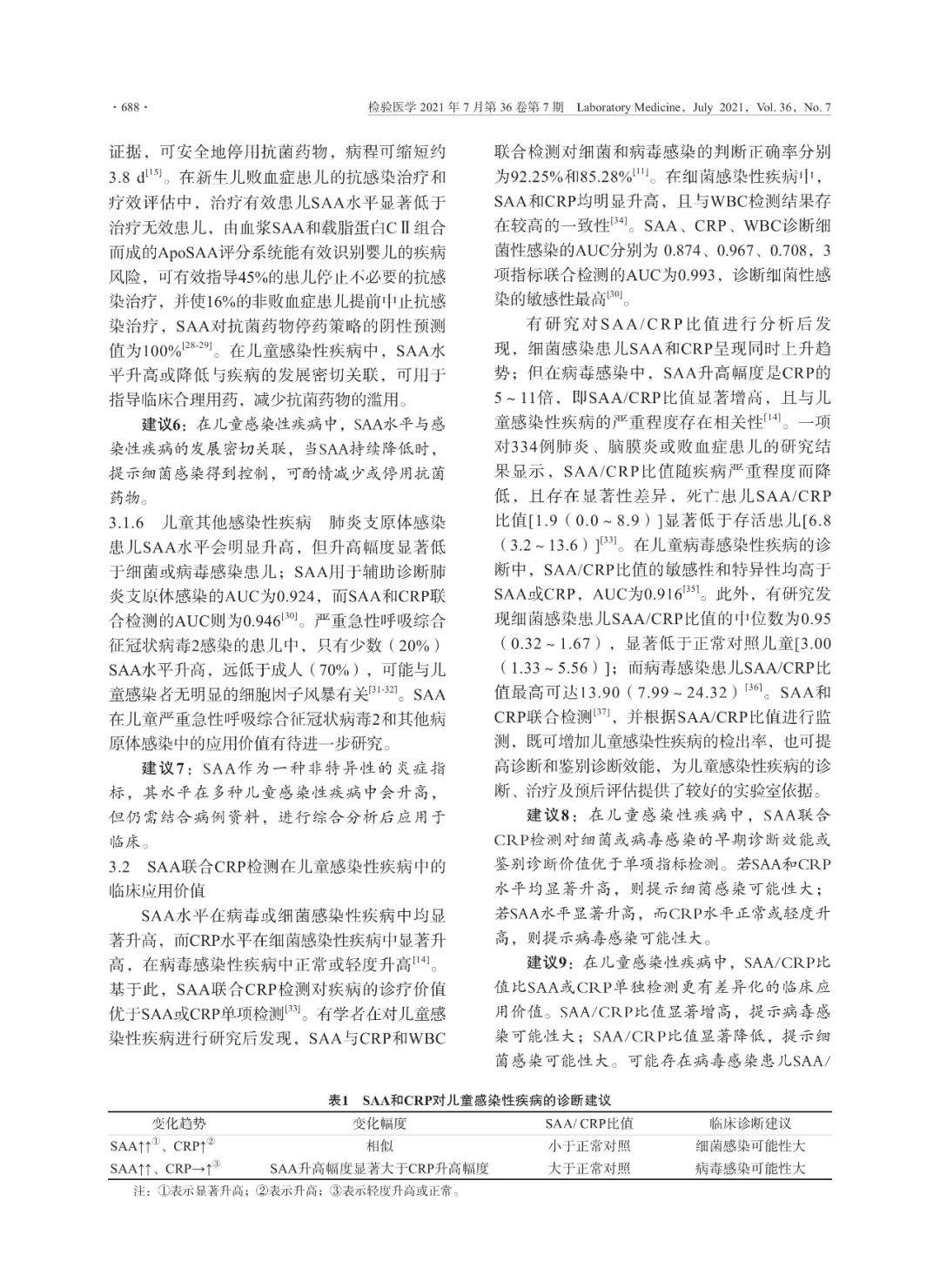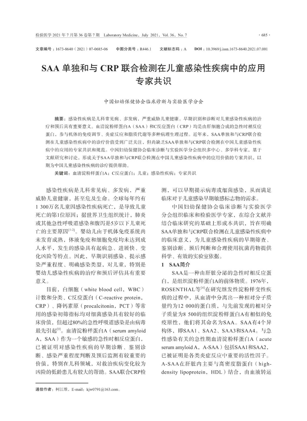 SAA单独和与CRP联合检测在儿童感染性疾病中的应用专家共识