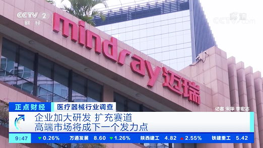 8月10日,CCTV 2《正点财经》对迈瑞医疗的自主创新成果进行了报道,迈瑞医疗董事长李西廷接受了采访。