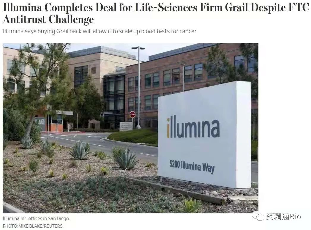 Illumina Inc.2021年8月18日宣布,公司完成了以71亿美元收购Grail的计划,Grail是一家专注于利用DNA进行癌症早期检测的生物技术公司,尽管该交易面临来自联邦贸易委员会的法律挑战和欧洲的反垄断审查。