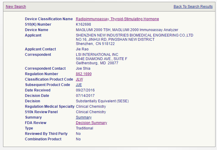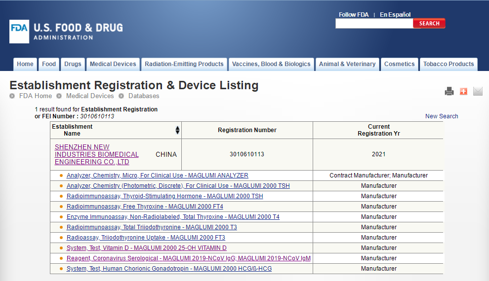 质量是临床检验的根本,影响临床结果的判断和病人的治疗方案,并关乎病人的生命。高质量的产品可以确保临床诊断的准确性。 质量是国家之间竞争的重要因素,高质量产品的输出是国家走向世界先进水平的必由之路。 一、美国FDA 美国食品药品监督管理局(英语:U.S. Food and Drug Administration,缩写为FDA)为美国卫生与公众服务部直辖的联邦政府机构,其主要职能为负责对美国国内生产及进口的食品、膳食补充剂、药品、疫苗、生物医药制剂、血液制剂、医疗设备、放射性设备、兽药和化妆品进行监督管理,同时也负责执行公共健康法案(the Public Health Service Act)的第361号条款,包括公共卫生条件及州际旅行和运输的检查、对于诸多产品中可能存在的疾病的控制等等。 1) 政府专员办公室(OC) 2) 药品审评和研究中心(CDER) 3) 生物制品审评和研究中心(CBER) 4) 食品安全和应用营养中心(CFSAN) 5) 设备与放射健康中心(CDRH) 6) 兽药中心(CVM) 7) 国家毒理学研究中心(NCTR) 8) 监管事务办公室(ORA) (1)成立了产品评估和质量办公室(OPEQ)–将合规办公室、设备评估办公室、监视和生物识别办公室以及体外诊断和放射健康办公室合并为一个专注于整个产品生命周期方法的超级办公室对医疗器械的监督。 (2)建立了政策办公室-包括两个团队,即指导立法和特别项目团队以及法规文件和特别项目团队。 (3)建立了战略合作伙伴关系和技术创新办公室–合并了科学和战略合作伙伴关系,数字健康、标准、健康信息学和创新团队。 (4)中心内重新调整的管理服务–确保CDRH中的管理职能得到最佳调整,结构化并提供出色的服务。 (5)简化了中心的沟通功能–将内部和外部沟通功能(包括CDRH ExecSec和议长联络员)组合到了沟通和教育办公室更名为沟通部,并建立了内部沟通处。 二、FDA 510(k) 1、产品分类《联邦食品、药品和化妆品法》的513节(FD&C ACT section 513),根据医疗器械的使用风险和可能产生的风险程度,将医疗器械划分为三个管理类别,采取不同程度的控制措施,根据美国医疗器械分类标准,医疗器械分类以“对产品的控制程度为基础”,为确保医疗器械产品的安全有效性,分为“基本控制”和“特殊控制”。产品被列为不同的类别,意味着其制造商向FDA申请获准上市的程序和提交资料将有所区别。(1) I类器械(一般控制)这类器械只需经过一般控制就可以确保其功效与安全性,如拐杖、眼镜片、胶布等。一般控制的内容包括:禁止粗制滥造及不当标示的产品销售、不良产品限制或禁止销售和使用的规定、有关通知消费者和修理、更换、补偿金等售后服务的规定、GMP要求和制造商,进口商及分销商的企业注册与产品登记等。划入II类、III类的器械同样要遵守以上的要求。2、上市前通知2) 相同用途、不同技术特征,但具有相同的安全性以及有效性,而且不会产生与对比器械(predicate device)不同的有关安全与有效性方面的问题。 1)申请函,此部分应包括申请人(或联系人)和企业的基本信息、510(K)递交的目的、申请上市器械的名称型号和分类资料、进行实质等效比较的产品(Predicate Device)名称及其510(K)号码; 2)目录,即510(K)文件中所含全部资料的清单(包括附件); 3)真实性保证声明,对此声明,FDA有一个标准的样本; 4)器材名称,即产品通用名、FDA分类名、产品贸易名; 5)注册号码,如企业在递交510(K)时已进行企业注册,则应给出注册信息,若未注册,也予注明; 6)分类,即产品的分类组、类别、管理号和产品代码; 7)性能标准,产品所满足的强制性标准或自愿性标准; 8)产品标识,包括企业包装标识、使用说明书、包装附件、产品标示等; 9)实质相等性比较(SE)摘要; 10)510(K)摘要或声明; 11)产品描述,包括产品的预期用途、工作原理、动力来源、零组件、照片、工艺图、装配图、结构示意图等; 12)产品的安全性与有效性,包括各种设计、测试资料; 13)生物相容性; 14)色素添加剂(如适用); 15)软件验证(如适用); 16)灭菌(如适用),包括灭菌方法的描述、灭菌验证产品包装和标识等。 4、申请流程1) 确认付款(FDA确认收到审核费,如确认收到审核费则继续受理工作):提交文件时要包括一份纸质档和电子档,以及内容一致性声明,FDA收到后会确认收没收到审核费。 2) 行政审核:FDA检查电子文件的格式是否符合要求,如不符合要求有最长180天的整改时间,FDA确认是否申请所有的要素都已经提供;如不符合要求有最长180天的整改时间。 3) 实质审核:FDA会进行最长60天的实质审核,实质审核结束后会做出决定发布或者交互审核。 4) 补充材料:按照FDA的要求准备补充材料,有最长180天的整改时间。 5) 交互审核:FDA会对补充材料进行审核,补充材料的审核时间根据情况有所差异。 三、产品性能评估要求 申请美国FDA认证过程中,需要提交技术文档,其中最为重要的是产品性能资料,其中需要包括精密度、灵敏度、线性、稳定性、分析特异性、方法学比对、参考区间等,尤其是参考区间需要考虑人种对项目的影响,需要在美国本地完成参考区间的建立。另外,方法学比对需要考虑至少三个实验室三台仪器的差异性,同时也需要在美国本地完成方法学比对测试。各类性能的评估需要严格按照美国CLSI EP指导文件的方案和标准,具体各性能参考的标准如下表1所示:四、新产业FDA准入产品 新产业作为化学发光免疫分析领域的国际领先企业,一直秉承着“像捍卫