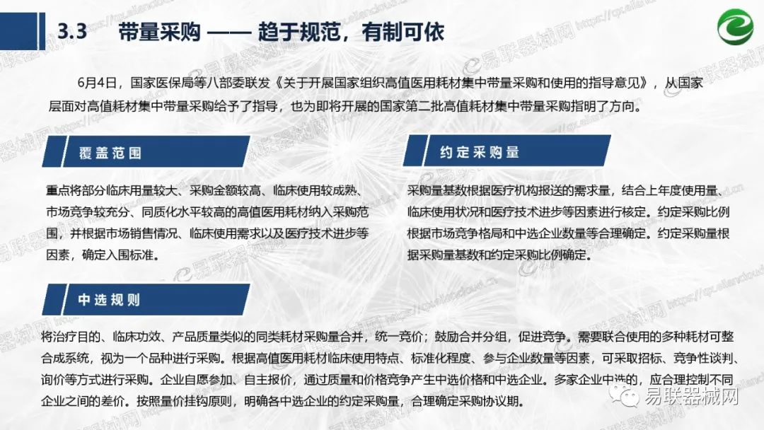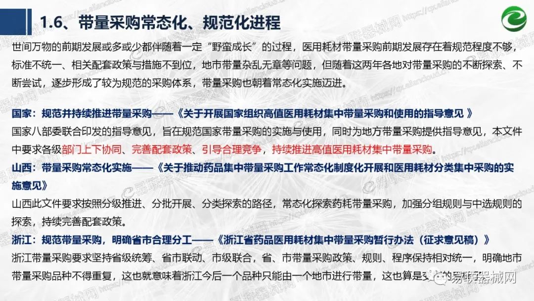 带量采购方面:带量采购持续发力,仍是行业内的焦点所在。带量采购常态化、规范化文件相继出台,引领耗材带量采购走向新的篇章……