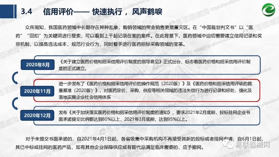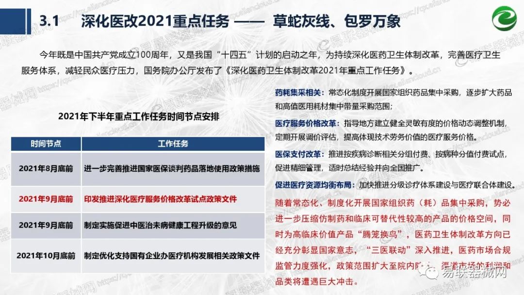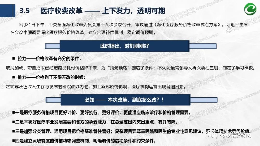 摘要: 带量采购方面:带量采购持续发力,仍是行业内的焦点所在。带量采购常态化、规范化文件相继出台,引领耗材带量采购走向新的篇章……政策方面:八部委联合印发《深化医疗服务价格改革试点方案》;信用评价制度建立,严 ...