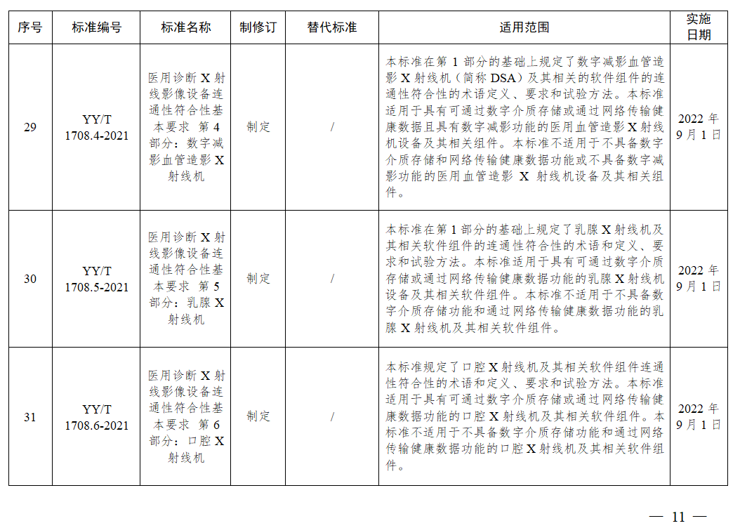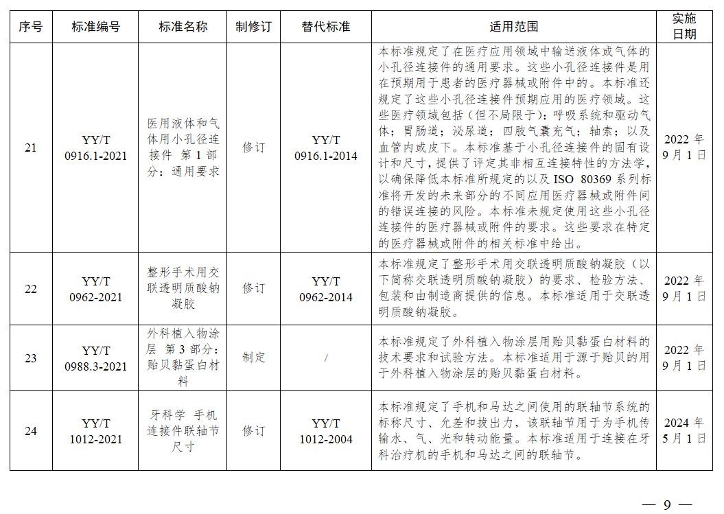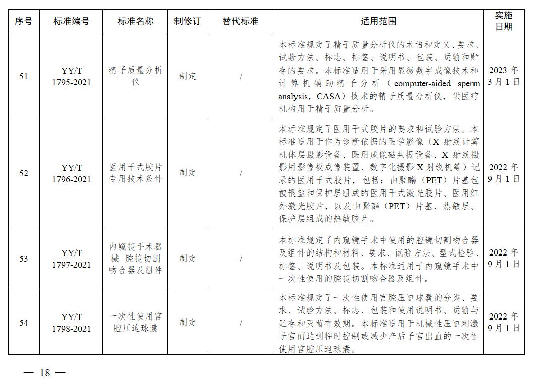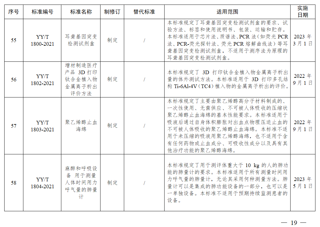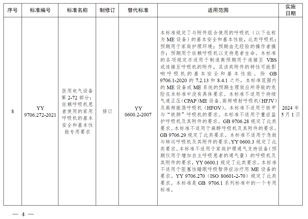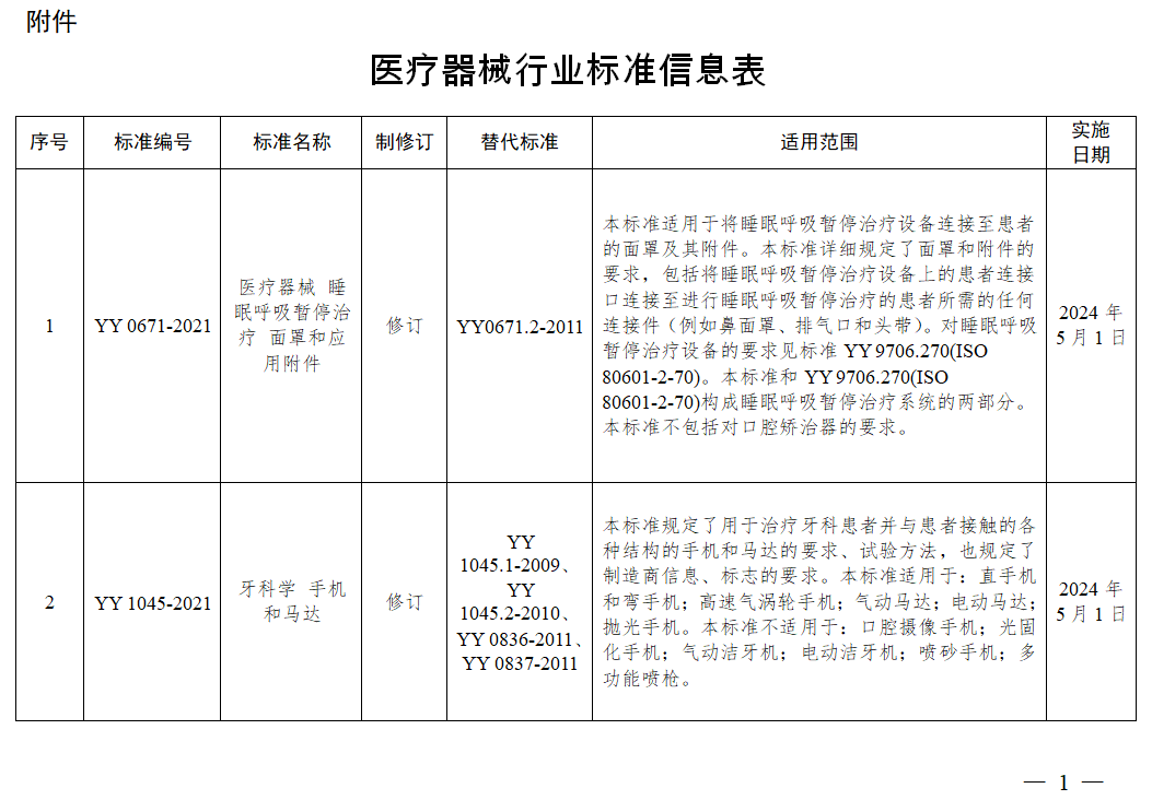 YY 0671-2021《医疗器械 睡眠呼吸暂停治疗 面罩和应用附件》等63项医疗器械行业标准已经审定通过,现予以公布。标准编号、名称、适用范围和实施日期见附件。