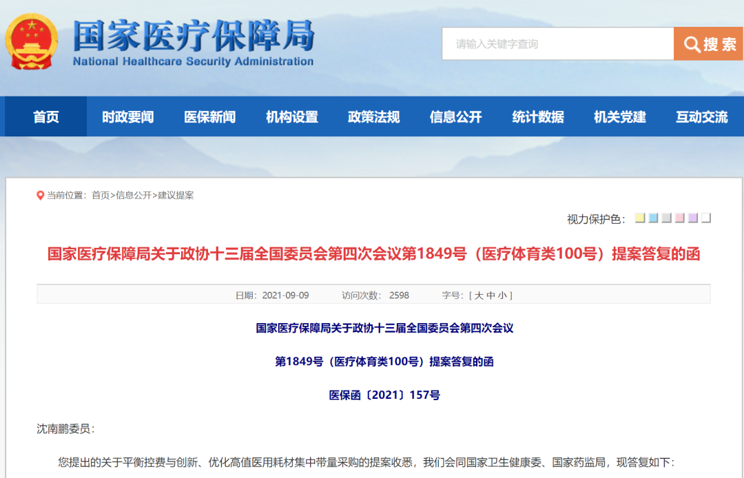 近日,国家医保局发布了对沈南鹏委员提出的“关于平衡控费与创新、优化高值医用耗材集中带量采购的提案”的答复函。 沈南鹏委员: 您提出的关于平衡控费与创新、优化高值医用耗材集中带量采购的提案收悉,我们会同国家卫生健康委、国家药监局,现答复如下: 一、合理制定医用耗材集采规则 (一)综合考虑产品质量疗效,引导企业有序竞争。您提出充分评估产品的质量疗效,形成分组技术规范开展医用耗材集采的建议,对我们开展工作具有重要的参考意义。目前,我们从相似度较高的品种入手开展集采探索。依托各省级集中采购平台,掌握临床使用医用耗材的真实数据,包括价格、采购量、企业竞争格局等信息。在客观分析数据的基础上,充分听取临床专家意见,综合考虑产品质量、材质、疗效,对治疗目的、临床功效、产品质量类似的同类医用耗材采购量合并,统一竞价,公平竞争。随着改革的深入推进,更加多样化的品种纳入集采范围,我们将按照“一品一策”的原则,在充分考虑产品质量、价格、供应、诚信等因素的基础上,不断完善集采规则。 (二)防范恶意低价竞争、促进企业创新发展。关于防止企业恶意低价竞争,在减轻医保负担的同时关注医用耗材创新的建议,我们在现有工作中已有所考虑。国家组织冠脉支架集中带量采购允许多家中选,中选率较高,一定程度上防止企业激烈竞争后出现价格过低的情况。同时,采购文件明确“以低于成本的价格恶意申报,扰乱市场秩序的企业,经有关部门认定情节严重的将被视为有失信行为,纳入企业信用记录,列入‘违规名单’,并取消该企业的申报、中选资格”。在设计冠脉支架集采规则时,我们既考虑了集采产品的技术成熟性,也为未来的创新产品留出市场空间。一是根据产品市场结构设定带量比例,确定首年意向采购量为医疗机构报送采购需求的80%,为今后可能出现的新产品留出市场空间。二是根据市场竞争情况,合理设定采购周期为2年,鼓励新产品参加集采。通过上述规则设计,避免市场固化,使得非中选产品以及未来的新产品仍有充足市场空间。 二、完善医疗器械质量监管体系 国家卫生健康委高度重视高值医用耗材管理改革工作,推进统一的分类与编码纳入2021年深化医改的重点工作任务。国家药监局启动了《医疗器械使用质量监督管理办法》(以下简称《办法》)修订工作,拟明确规定医疗器械使用单位应当采用信息化技术手段进行医疗器械质量管理,按照有关规定推进唯一标识与医疗业务系统的衔接应用。目前,《国家医疗器械不良事件监测系统》已预留UDI接口,根据工作需要可按程序启动此项功能。 您提出的依托UDI完善临床使用环节监控追溯,确保中选产品质量的建议,对我们不断完善集采工作具有重要的借鉴意义。当前,国家医保局正有序推进人工关节集采工作,已部署高值医用耗材联合采购办公室研究开发相应系统,对中选产品实现追溯,监测中选关节使用情况、翻修率、不良事件等指标,为质量追溯提供支持。 三、下一步工作考虑 您提出的完善医用耗材集采制度、防范超低价中标、减轻医保负担的基础上支持鼓励产品创新、细化HTA评估、对中选产品进行长期质量监测的建议,对我们工作很有参考意义。 下一步,我们将配合卫生、药监等部门积极推进医疗器械唯一标识政策实施,围绕高值医用耗材治理,探索新模式、新方法、拓展唯一标识在医药、医疗、医保等领域的衔接应用,促进医疗产业高质量发展。同时,深入推进高值医用耗材集中带量采购,不断总结经验,根据医用耗材特征“一品一策”精心组织,重点将部分临床用量较大、采购金额较高的高值医用耗材纳入集采,并逐步扩大采购范围,减轻群众就医负担。 感谢您对医疗保障工作的关心和支持。 国家医疗保障局 2021年8月19日 |