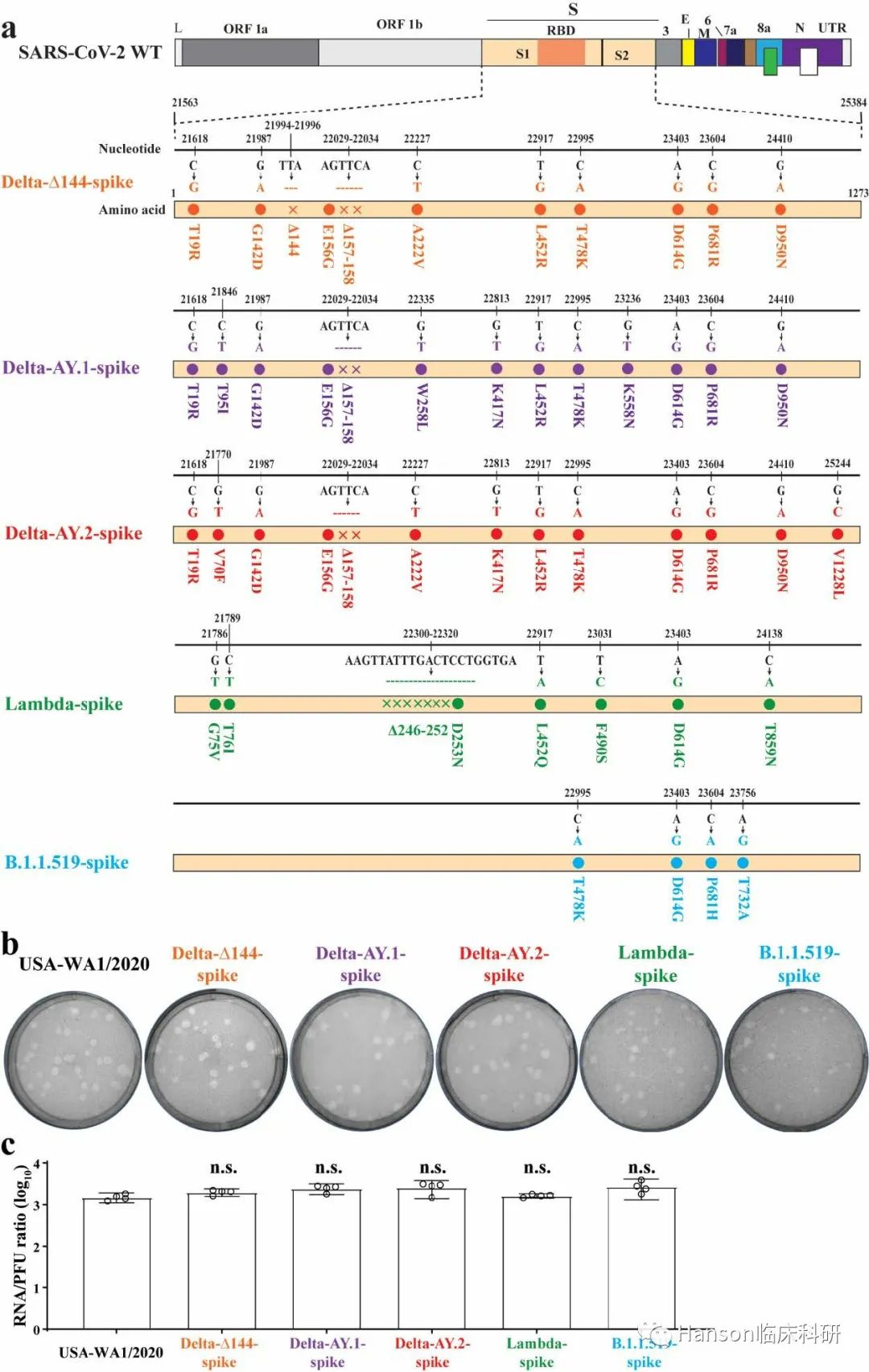关键词:COVID-19;Delta突变株;BNT162b2 (Delta突变株的蔓延。图源:Wiki,Credit: TapticInfo - GISAID) 随着新冠病毒Delta突变株在全球蔓延,原本通过疫苗接种大幅降低了COVID-19新增病例的国家,再次出现病例高涨,甚至比之前更为迅猛。 一方面,由于人类在成功阻击新冠病毒后放松警惕,过度相信疫苗。以至于各国在6月份之后纷纷推出“独立日”、“自由日”,并由此重新开放,放弃了应有的防疫措施。 另一方面,作为人类历史上传染性第三强的病毒,Delta突变株除了具有极高传染性,更被证明毒力更强;由此让早期开放的以色列、英国、美国等国大吃苦头。 最重要的流行病学研究确认:Delta突变株毒力更强,感染者住院风险是Alpha突变株的2.26倍 【重磅】美国CDC内部文件泄露,爆出新冠Delta突变株成为“最具传染性的病毒之一” 除此之外,医学科学家内心深处对还有一个深深的焦虑:Delta突变株发生免疫逃逸的能力到底怎么样? 也就是说:人类通过疫苗及感染过新冠病毒后获得的免疫力,对于Delta突变株是否还有效。 更重要的是,Delta突变株还在继续突变,并形成了AY.1、AY.2和Delta 144等三种亚型(Delta +)。 面对Delta +,人类疫苗尚能战否? (Delta的关键突变位。Credit: Juan Gaertner. Copyright: © Juan Gaertner/SCIENCE SOURCE) 研究分析了20名接种了第二剂BNT162b2后14天受试者血清,发现接种者血清对原始SARS-CoV-2 原始毒株活病毒金标准中和PRNT50为520,对Delta突变株的三种亚型AY.1和AY.2和Delta144分别为355、394和453,对Lamda为597,对B.1.1.519为640。 (BNT162b2 疫苗对不同新冠突变株的中和活性) “The real concern is whether the variant can evade the immunity conferred by vaccination — and there’s no real evidence that Delta Plus can do that any better than Delta,” Wilson said. Lambda(C.37)突变株首先在秘鲁发现,并已经传播到了46个国家,在南美洲广泛传播。 B.1.1.519于2021年年初在墨西哥发现,并在该国成为主流毒株。 (新冠突变株的结构和特点) 在新冠病毒(SARS-CoV-2)自2019年12月爆发以来,已经出现了多种突变,其中主流的突变显著增加了传染性、毒力,以及部分逃避疫苗或者感染后产生的免疫应答。 小结: 本研究确认了BNT162b2 mRNA疫苗接种者血清,仍可有效中和Delta突变株亚型。 对此结果,Pei-Yong Shi及同事建议: 本研究的发现非常支持加快“广泛接种BNT162b2的免疫策略”,以控制当前正在传播的突变株,最大限度地减少新突变的出现、从而结束COVID-19大流行。 |