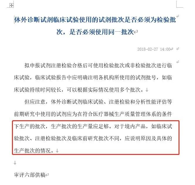问题: 注册资料里分析性能研究、稳定性研究这些临床前研究的产品批次和注册检验产品批次是否可以用相同批次? 观点1:体系下三批产品出来就去安排送检,同时做分析性能研究和稳定性观察,不分先后顺序。 观点2:体系下首先三批应该先做完分析性能评估,再生产三批去送检。 审评要的是产品定型(体系下三批)后的研究资料,分析性能和技术要求这些指标在研发过程中就大概定型了,最后生产三批产品是做验证的,难道分析性能产品的研究真的是要等三批产品出来再做吗? 专家观点1,从时间逻辑上,要分开 一般是研发三批,用来做性能验证、稳定性,然后再三批做注检 同时做就会面临问题, 1)如果你做实时效期,可能还没验证完成。 2)其他的指标,没有经过这三批的验证,如何输出技术要求 体外诊断的稳定性不承认加速试验,只能做实时稳定性。所以必须等到稳定性结果出来才能做注检。等验证完效期,这三批都过期了,必须重新生产了。 专家观点2,从性能验证上,要分开 分析性能评估,并不是只有验证部分,是包括建立和验证两部分内容,如果没有完成建立过程的话,就去做注册检验,是不可行的。 研发过程中,用实验室制备的试剂进行分析性能研究,和用在符合医疗器械生产质量管理规范的条件下生产的三批试剂,进行分析性能研究,这是两件事。 转产和放大生产,是整个产品质量环节的重中之重。实验室自己调试的试剂做的再好,转产和放大后,失败概率都很巨大,不存在实验室小样做的稳定,大样一定稳定这种情况,两者的性能参数也会有很大不同。光大设备和小设备的误差差距,就足够把产品性能打下来。IVD实际上属于一种计量器具,从这个角度看问题,就很清楚了。所以转产以后的分析性能试验不做完就送检不可以,因为研发没做完工作。 结合审评中心的答疑 “免于进行临床试验的体外诊断试剂无需在完成注册检验之后再开始进行临床评价,但产品必须完全定型后,方可开展临床评价。”