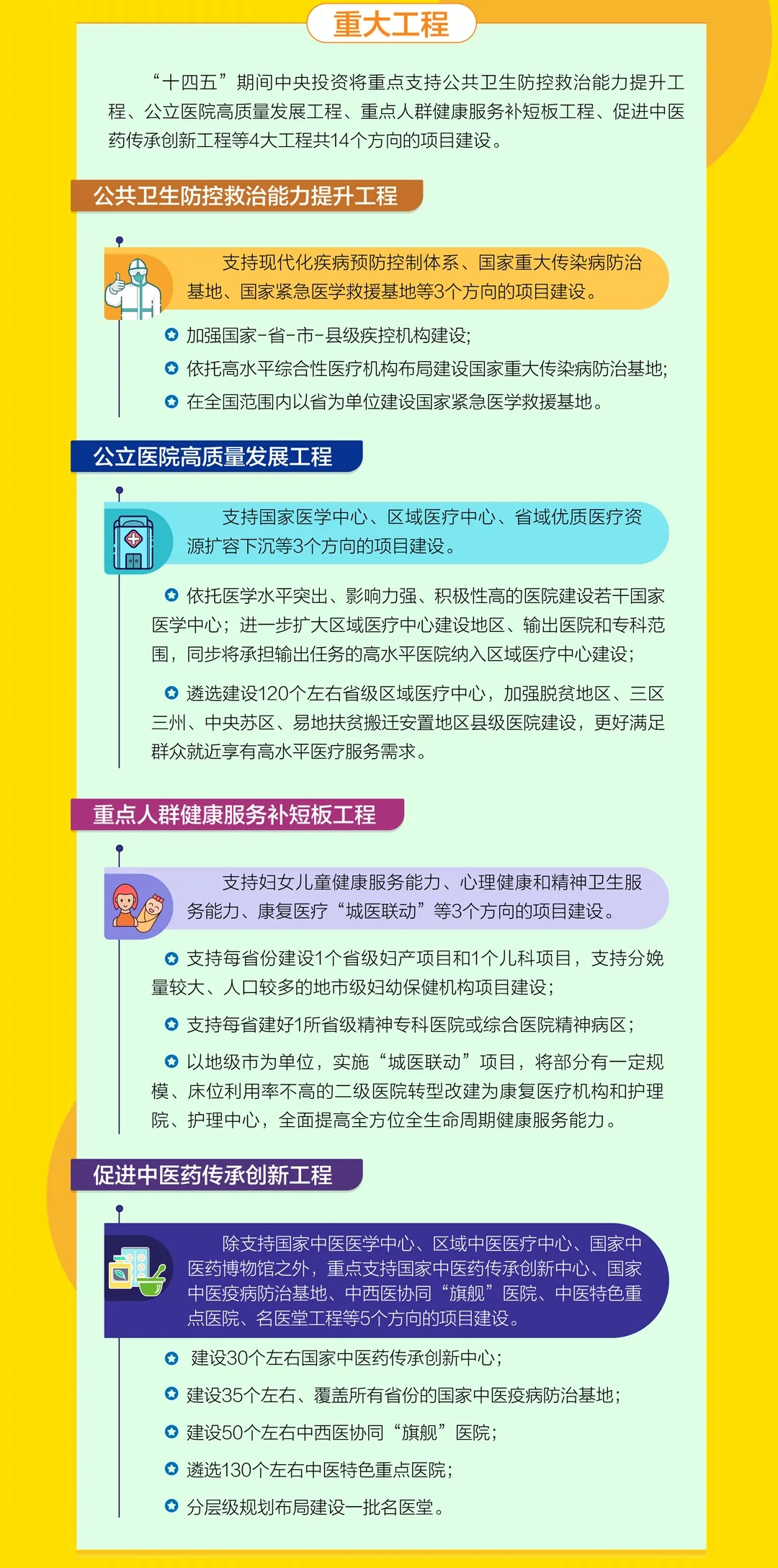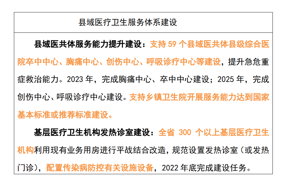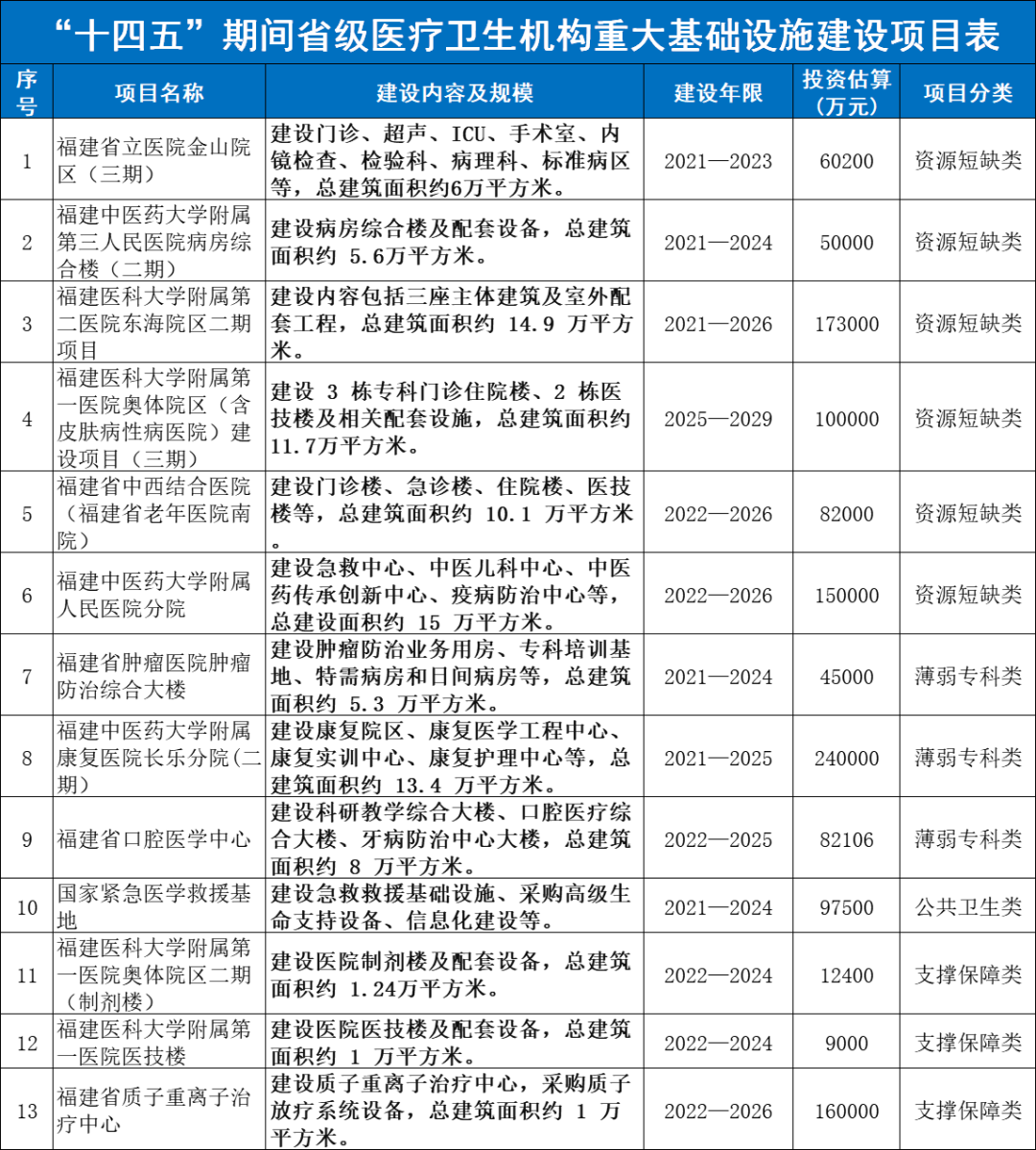 2021年,是疫情爆发的第二个年头,也是十四五规划的起始之年。未来15年,中国医院的新老基建热潮将就此掀起! 下个15年,财政重点砸向4大医疗工程 疫情的突然爆发,暴露出中国公卫共生体系的诸多不足,当前发热门诊覆盖率低、传染病区建设不完善、人均ICU床位不足等成为医院设施的严重短板。 近日,国家发改委在内的四部委联合发布《“十四五”优质高效医疗卫生服务体系建设实施方案》(以下简称《方案》)。 这份攸关中国医疗未来15年发展方向的重要文件,掀开了中国医疗”新老基建热潮“的大幕。《方案》明确要从4大工程,14大方向,全面推进中国医疗重大工程建设,并且中央财政规划了具体资金投放。 省级文件下发!超百亿砸向这些医院建设 在国家下发之后,各省相继出台省级十四五医疗规划文件,这意味着,以公共卫生防治能力提升、高质量公立医院建设等四大工程为重点方向的”基建热潮“,要全面落地执行! 福建省政府下发了《福建省“十四五”卫生健康发展专项规划的通知》(以下简称《规划》)。福建省这份15年规划,可谓是高举高打,围绕国家方案制定了具体的落地计划。 《规划》中下发了《“十四五”期间省级医疗卫生机构重大基础设施建设项目表》,明确投入126.12亿元,用于全省13所大型医院建设,其中包括相关科室医疗设备配置。 全面加大发热门诊、疾控实验室,设备配置! 在公共卫生防控救治能力提升工程方面,《计划》要求全面加大发热门诊、疾控中心及实验室、传染病房等建设,配齐相关医疗设备配置: 提升县域急救中心、发热门诊建设! 全部配置这些医疗设备 《规划》要求到2025年,福建全省59个县(市、区)综合医院要全部建成“四大中心”,即卒中中心、胸痛中心、呼吸诊疗中心、创伤中心; 对于“四大中心”建设标准,近日《福建省县域医共体能力提升项目实施方案(2021-2025年)》下发,也明确规范了设备配置标准。 同时,加快基层医疗卫生机构发热诊室(或发热门诊)建设,全省 300 个以上基层医疗卫生机构利用现有业务用房进行平战结合改造,规范设置发热诊室(或发热 门诊),配置传染病防控有关设施设备,2022 年底完成建设任务。 也就是说,发热门诊医疗设备配置目录中的所有医疗设备,也必须要全部配齐。 附1:发热门诊医疗设备配置参考目录 重点专科、区域医疗中心建设!配置大批设备 除此之外,在重点专科建设方面,妇幼专科及医院方面: 康复医疗方面: 加强康复医院和综合医院康复医学科建设,重点支持设区市康复医院、县级综合医院康复医学科建设。推动康复医疗与康复辅助器具配置服务衔接融合。 在区域医疗中心建设方面: 后疫情时代的医疗信息化!财政全面加码 在国家版和福建省的医疗十四五规划中,都能清晰看到财政在全面加码医疗信息化建设。尤其是疾控信息系统和危急重症等临床重点专科的临床科研数据中心建设。 来自:医疗器械经销商联盟 · END · |