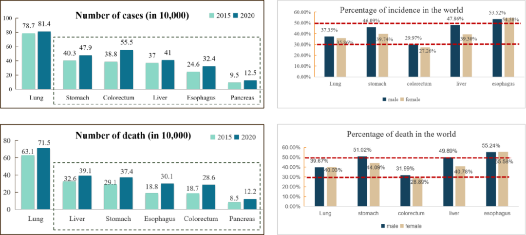 摘要: 消化系统肿瘤是中国最重的负担根据世界卫生组织国际癌症研究机构(IARC)最新发布的《2020年全球最新癌症负担数据》显示:2020年全球新发癌症病例1929万例,其中中国新发癌症457万人,占全球23.7%,高居全球第一。从 ...