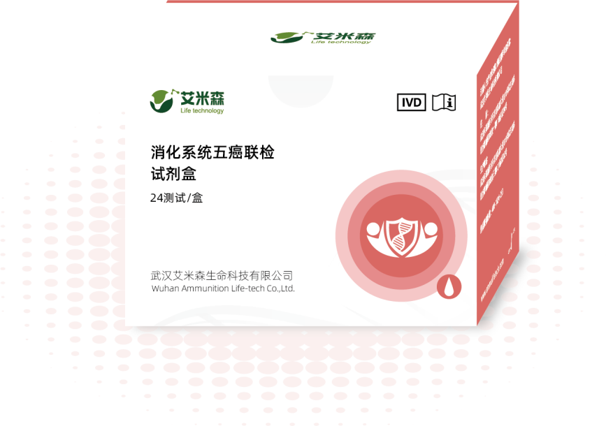 试验结论:基于血液DNA甲基化检测可有效发现癌症并精准定位癌种。然而,虽然基于NGS技术的甲基化检测可以精准定位癌种,但样本处理复杂,且检测耗时长,成本高昂,单个癌种的检测往往单价较高。1. cfDNA甲基化检测的为癌症早筛提供有力条件人外周血中含有来自于全身各个器官的循环游离DNA(Circulatingcell-free DNA,cfDNA),肿瘤细胞凋亡、坏死过程中会向外周血中分泌大量DNA片段(Circulating tumor DNA,ctDNA),因此癌症患者外周血中的ctDNA含量远高于健康人,且包含与肿瘤发生发展相关的基因改变。不同基因的甲基化修饰能够预示不同器官的癌变,并可根据循环肿瘤DNA(ctDNA)甲基化特征追踪到肿瘤原发部位,因此DNA甲基化已经成为目前癌症筛查的主要研究方向。经过多年技术积累,反复验证数千例临床样本,艾米森新推出了基于血液样本的消化系统五癌联检产品,艾消安TM。只需要一次采血10mL,即可实现对食管癌、胃癌、结直肠癌、肝癌、胰腺癌的五癌联合检测,五种癌症综合灵敏度高达94.5%,特异性达到92.0%,方便快捷,覆盖面广。取样方式便捷,适用于不愿选择内镜或内镜禁忌的人群。检测过程自动化,更高效更便捷,检测流程程序化,检测结果更稳定!采用cfDNA专用采血管,确保样本中的cfDNA不降解,通过离心分离血浆使用配套的血浆/血清游离DNA提取试剂盒和核酸纯化试剂盒高效提取血浆中的cfDNA,并且可以适配全自动核酸提取仪上机检测,当日出报告,排除无癌风险,明确溯源部位。