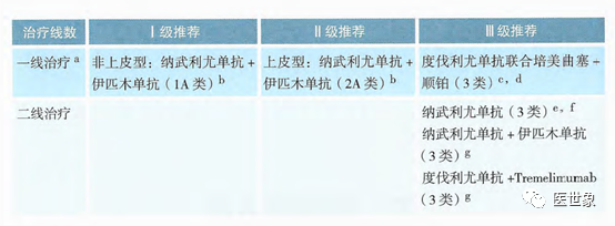 • 度伐利优单抗+Tremelimumab (3类证据)为二线治疗III级推荐
