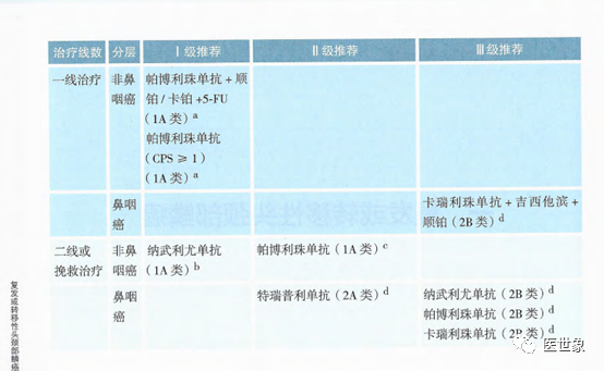 • 纳武利尤单抗(1A类证据)为非鼻咽癌二线或挽救治疗I级推荐。