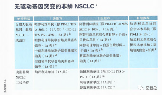 • 帕博利珠单抗(PD-L1 TPS≥50%,1A类证据)(PD-L1 TPS 1%-49%,2A类证据)