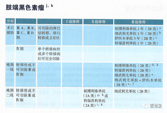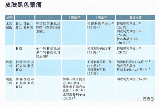• 纳武利尤单抗(1A类证据)为辅助治疗II级推荐。