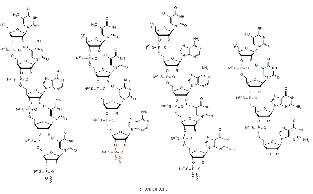 图4 Spinraza的分子结构(分子式C234H323N61O128P17S17Na17,分子量7501.0道尔顿)