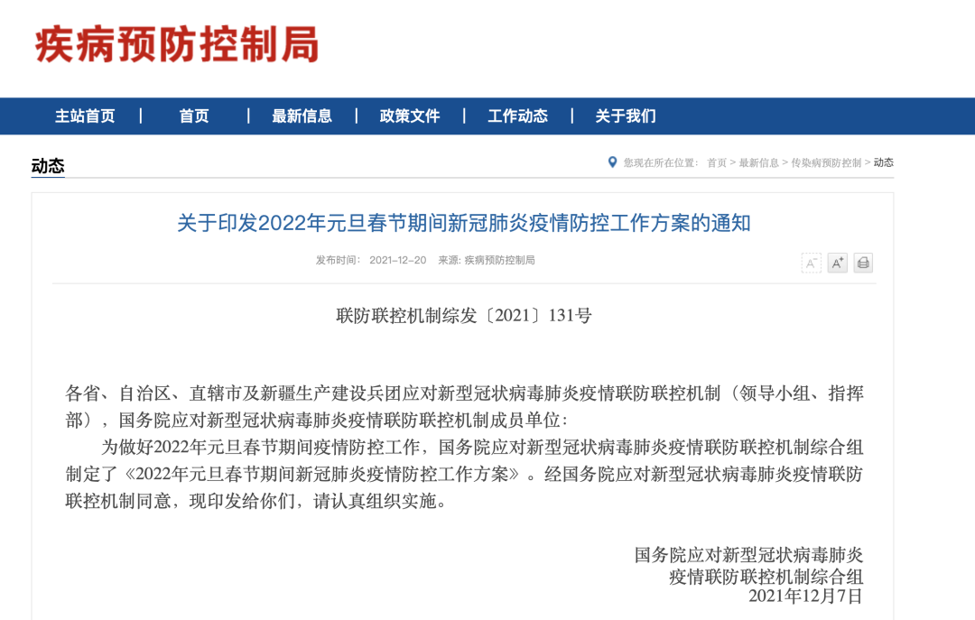 国家发布:元旦春节期间疫情防控方案!