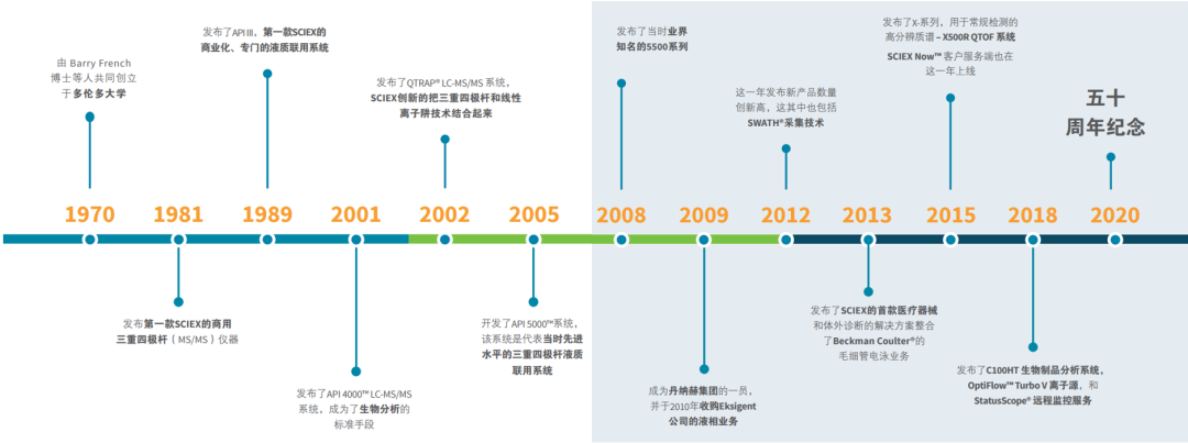 “一个非常有前景的行业” “21世纪是生物的世纪”这句话,是从小就喜欢生物小动物的桑小亮走入生命科学领域的契机。 而在20多年的工作过程中,他充分体会到这句话的深刻内涵。 早在2008年,美国《科学》杂志评选的年度世界十大科技进展中,生命科学已连续3年占据60%以上的份额。 而现在,在新冠疫情爆发之后,生命科学相关产业获得了更为广泛的关注和重视,呈现逆势向上的状态。生命科学及其所引领的大生命与大健康产业,也成为建设“健康中国”的战略性新兴产业主攻方向。 “我在机缘巧合下选择了一个合适的行业,也进入了一个非常有前景的技术领域。” 在加入SCIEX之前,桑小亮曾在通用电气医疗集团生命科学部工作了十几年,历经不同部门不同角色,而最后担任细胞基因治疗亚洲地区总经理的经历,更是让他跳出中国市场看到整个亚洲市场的发展趋势。“我看到很多不同领域科学家的先进理念,逐步地实现到了与人健康直接相关的领域,这是非常有意义的一件事情。” 加入SCIEX这家专注于液相色谱质谱联用仪和毛细管电泳技术研发生产和销售的公司,是桑小亮将这些先进技术加速度落地中国的开端。 SCIEX隶属于“并购之王”丹纳赫集团。在30多年的发展历史中,丹纳赫并购了400多家公司,成为企业快速成长的一个传奇。目前,丹纳赫市值超2000亿美元,荣登2021胡润世界500强第52位。 而SCIEX的历史更为悠长,在近半个多世纪的时间里,SCIEX始终坚持打磨液相色谱质谱联用仪和毛细管电泳技术,将这两种精准定性定量身边万物的技术带入到生命科学的领域中,助力科学家加速他们科研成果的转化。 ▲SCIEX发展史 在桑小亮看来,质谱是一种精准的信息捕获与测量技术——使用非常微量的样品,达到非常高的灵敏度,同时分析速度极快。这种分离和鉴定的技术被广泛地用在食品环境、生物医药、临床、法医、生命科学和材料科学等领域。 “这种精准定性定量身边万物的技术,能够通过信息的捕获,带来更多的科技创新以及应用价值。” 创新解决痛点,是制胜的要诀 “SCIEX在业内一直保持稳固的行业地位以及良好的客户口碑,主要是以质谱分析技术带来革命性的突破,不断开发创新一些新的应用和解决方案,不断满足客户对于样品检测速度、精度以及通量方面的要求。”谈及SCIEX在行业内制胜的“法宝”,桑小亮如是说。